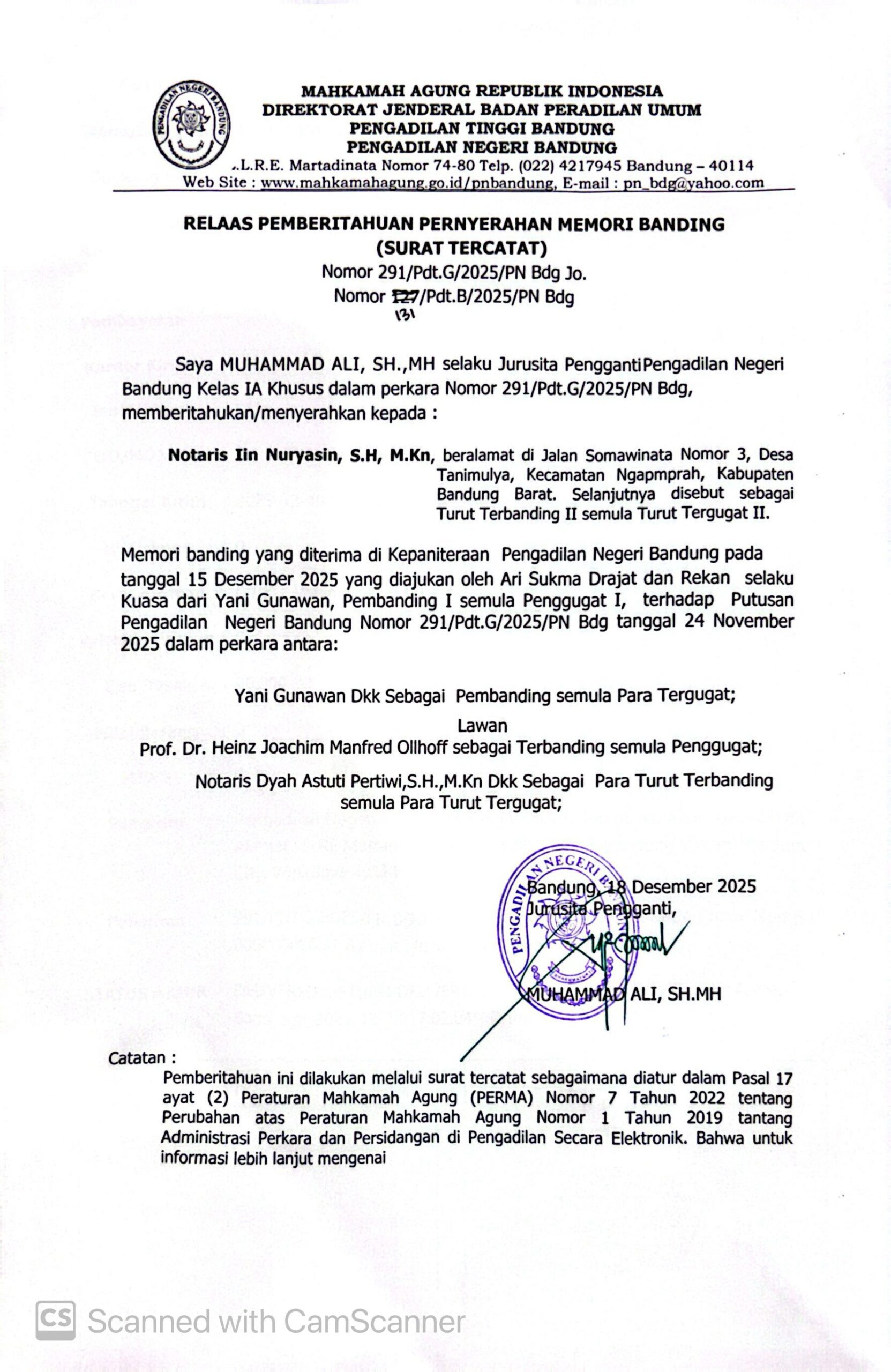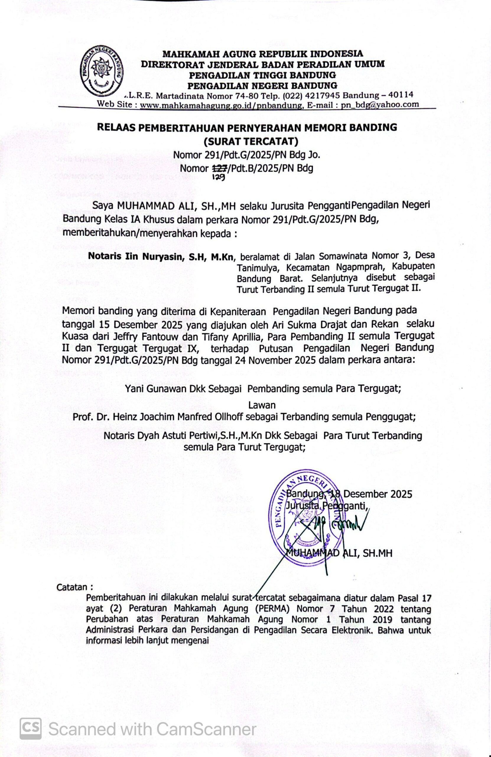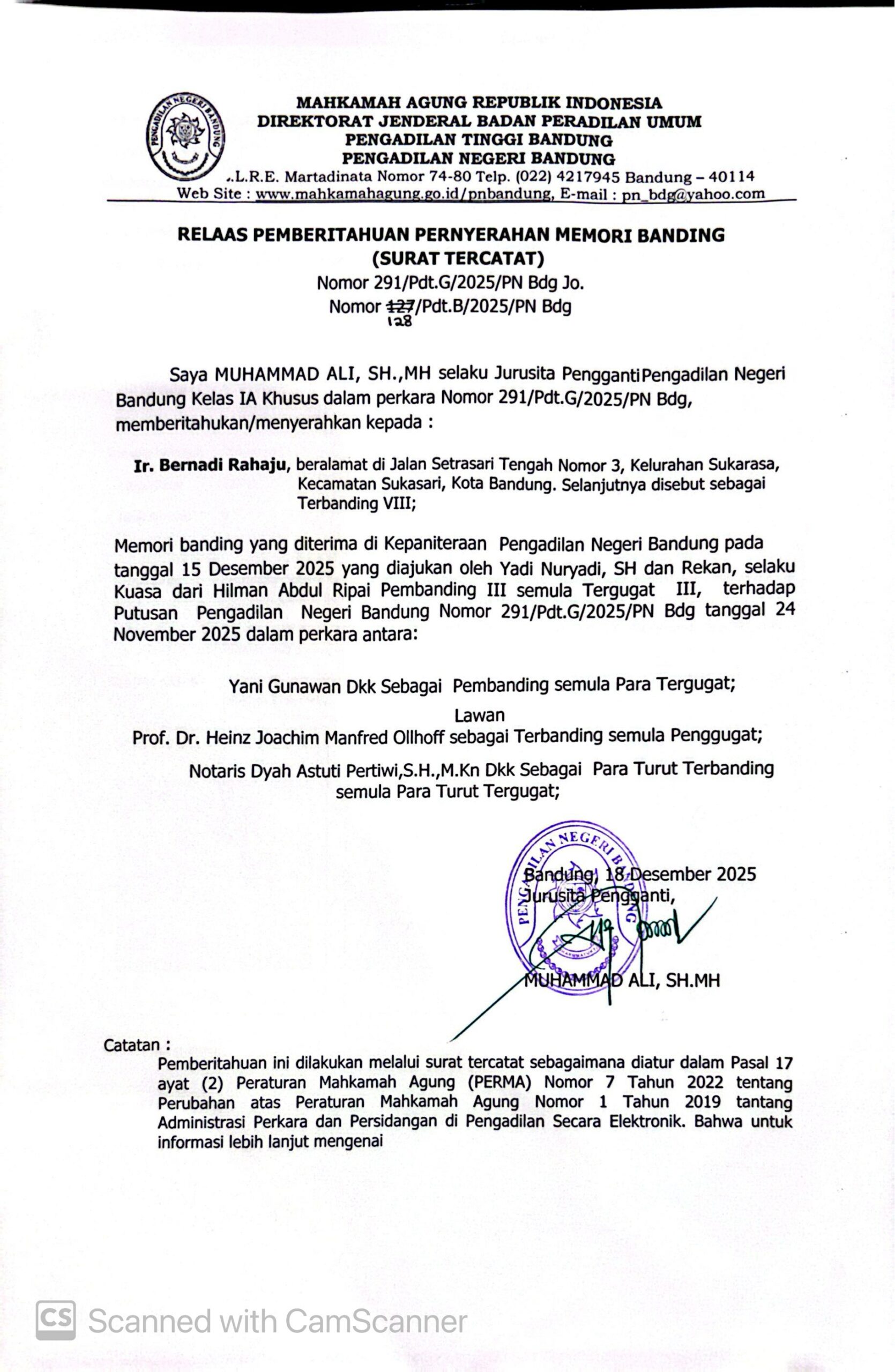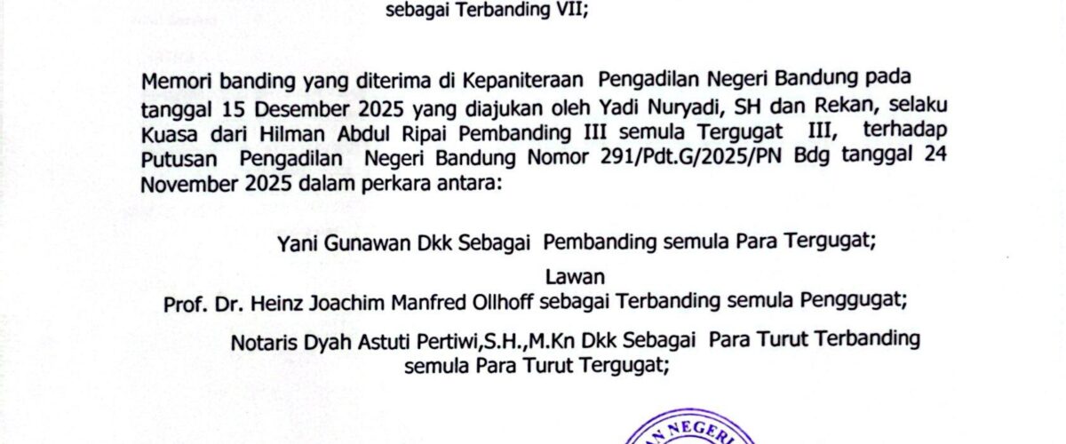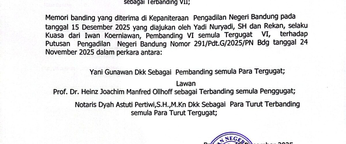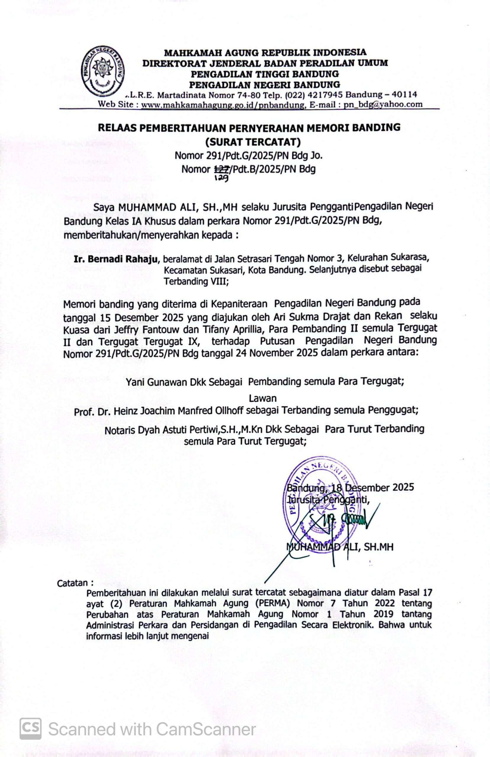 Nomor : 291/Pdt.G/2025/PN Bdg Jo. Nomor 131/Pdt.B/2025/PN Bdg