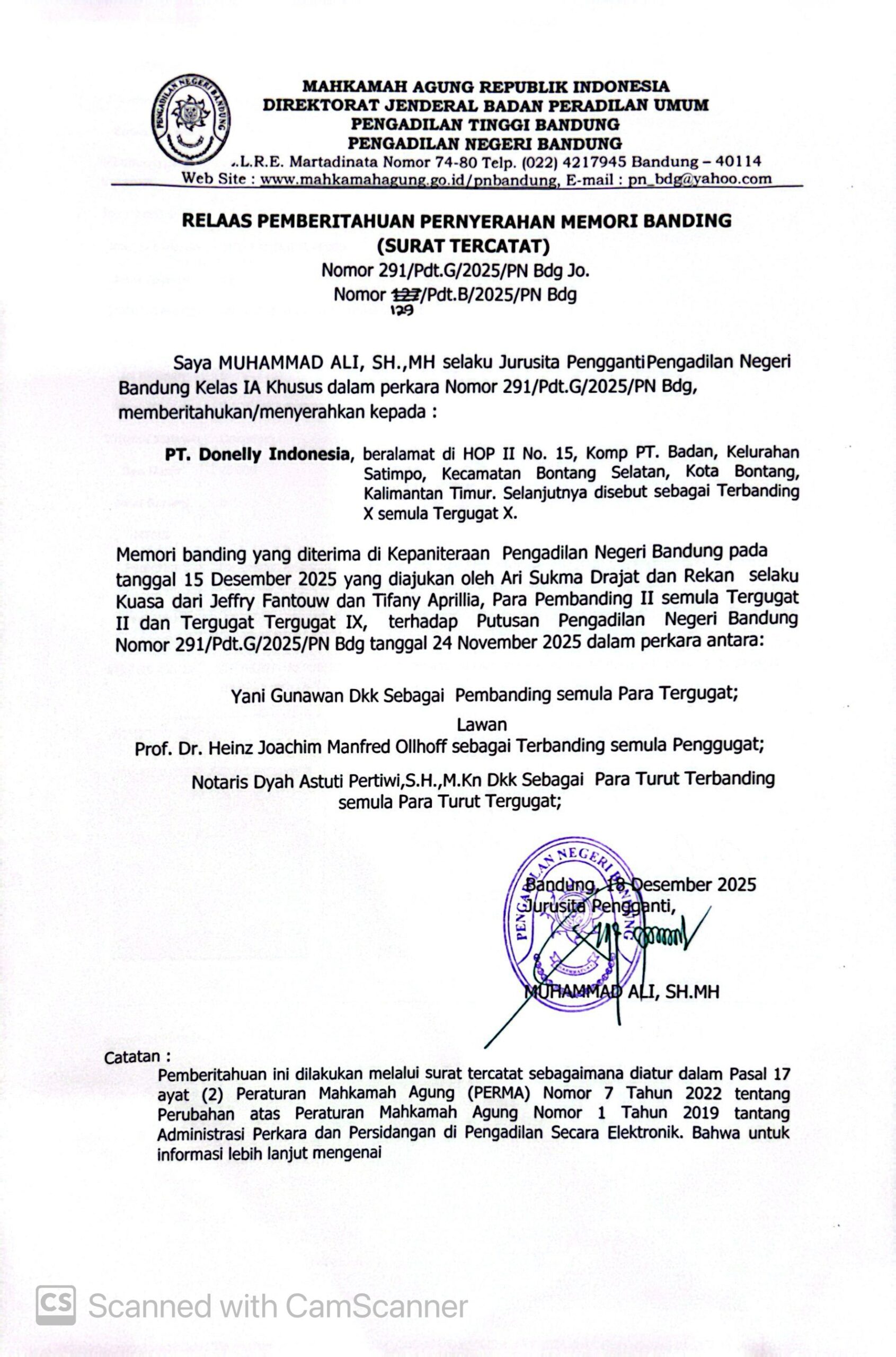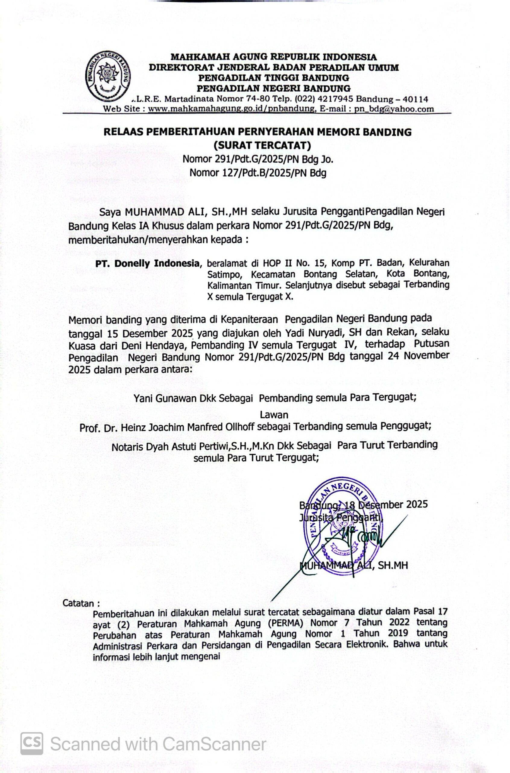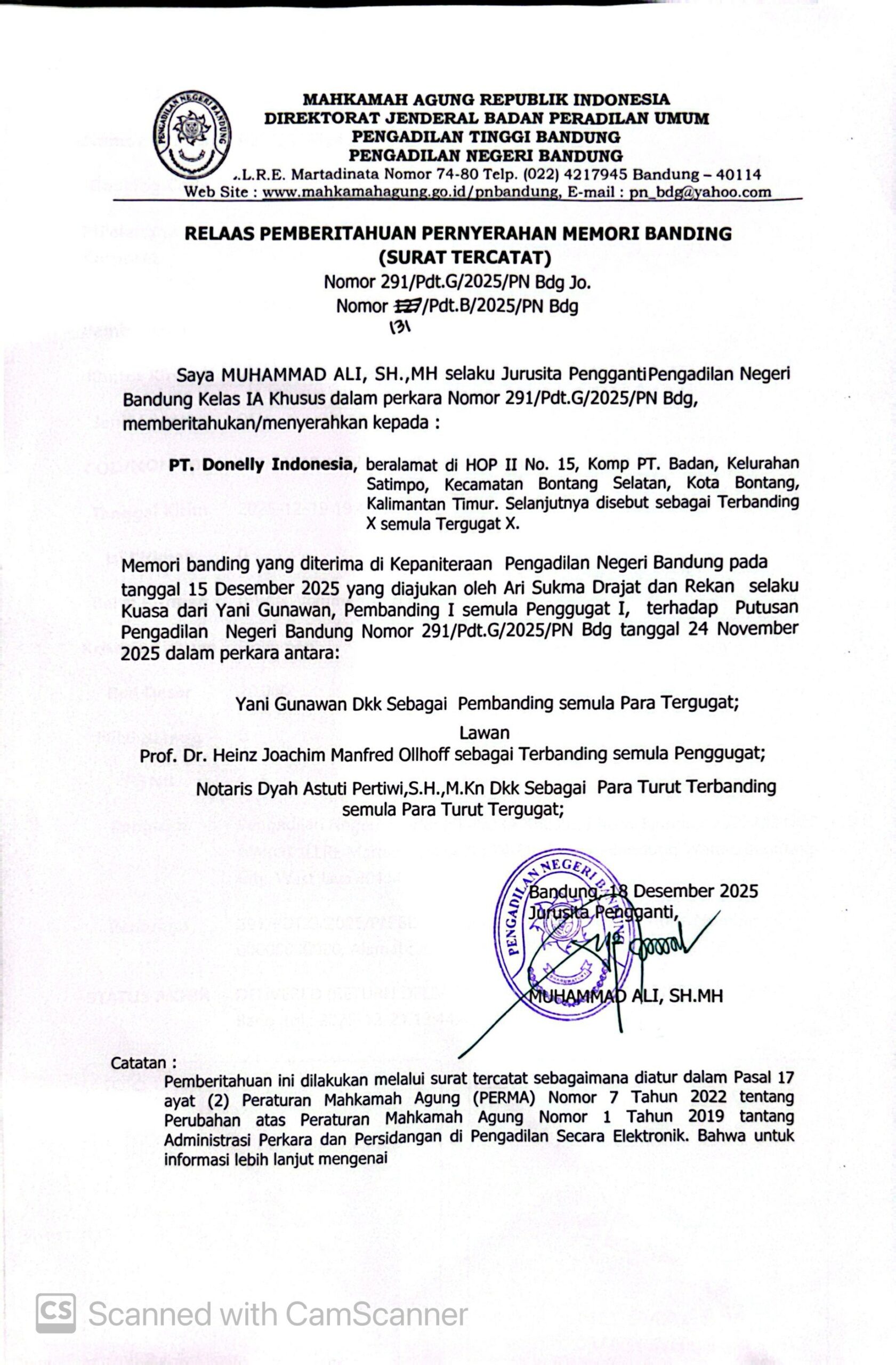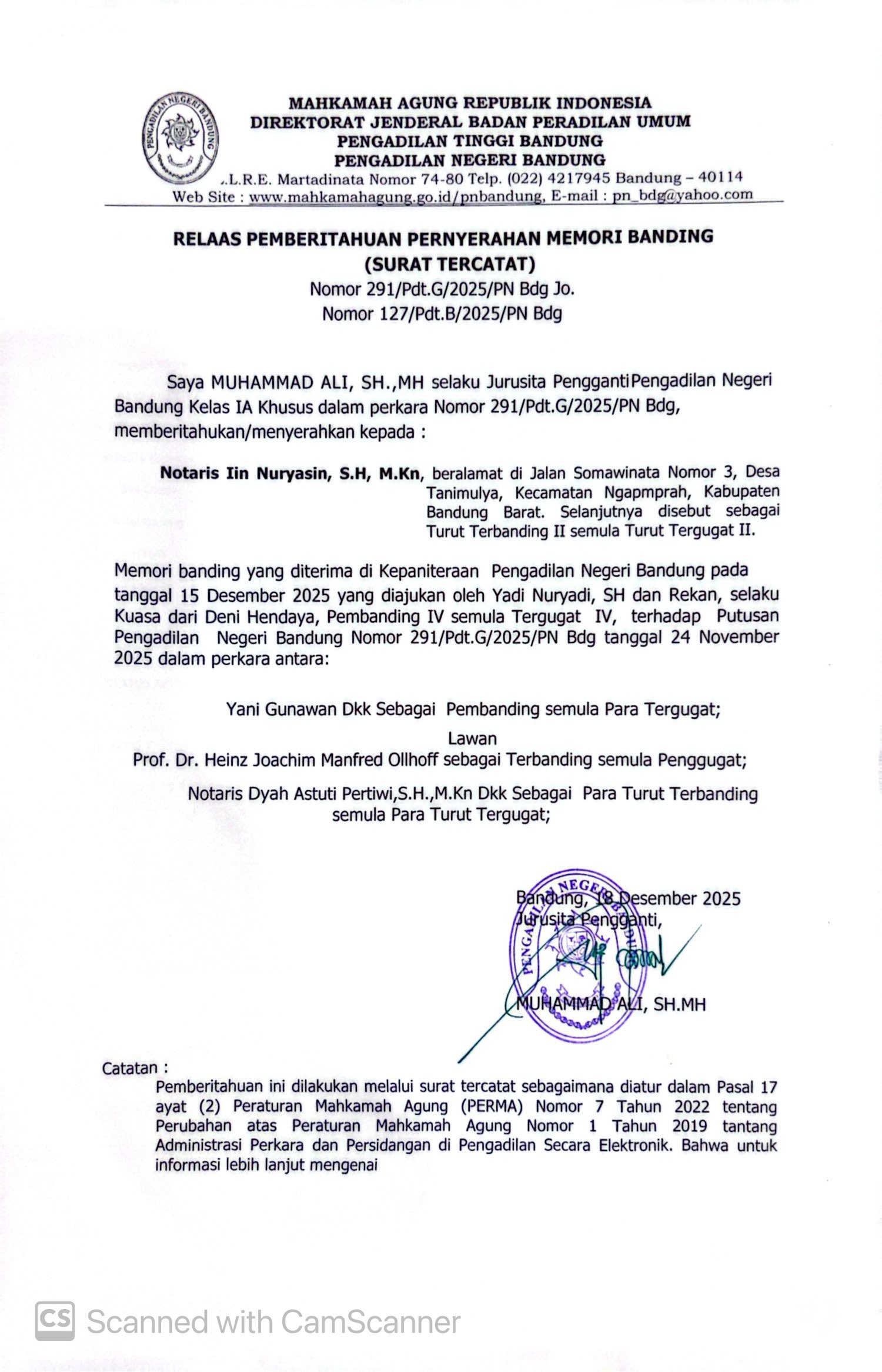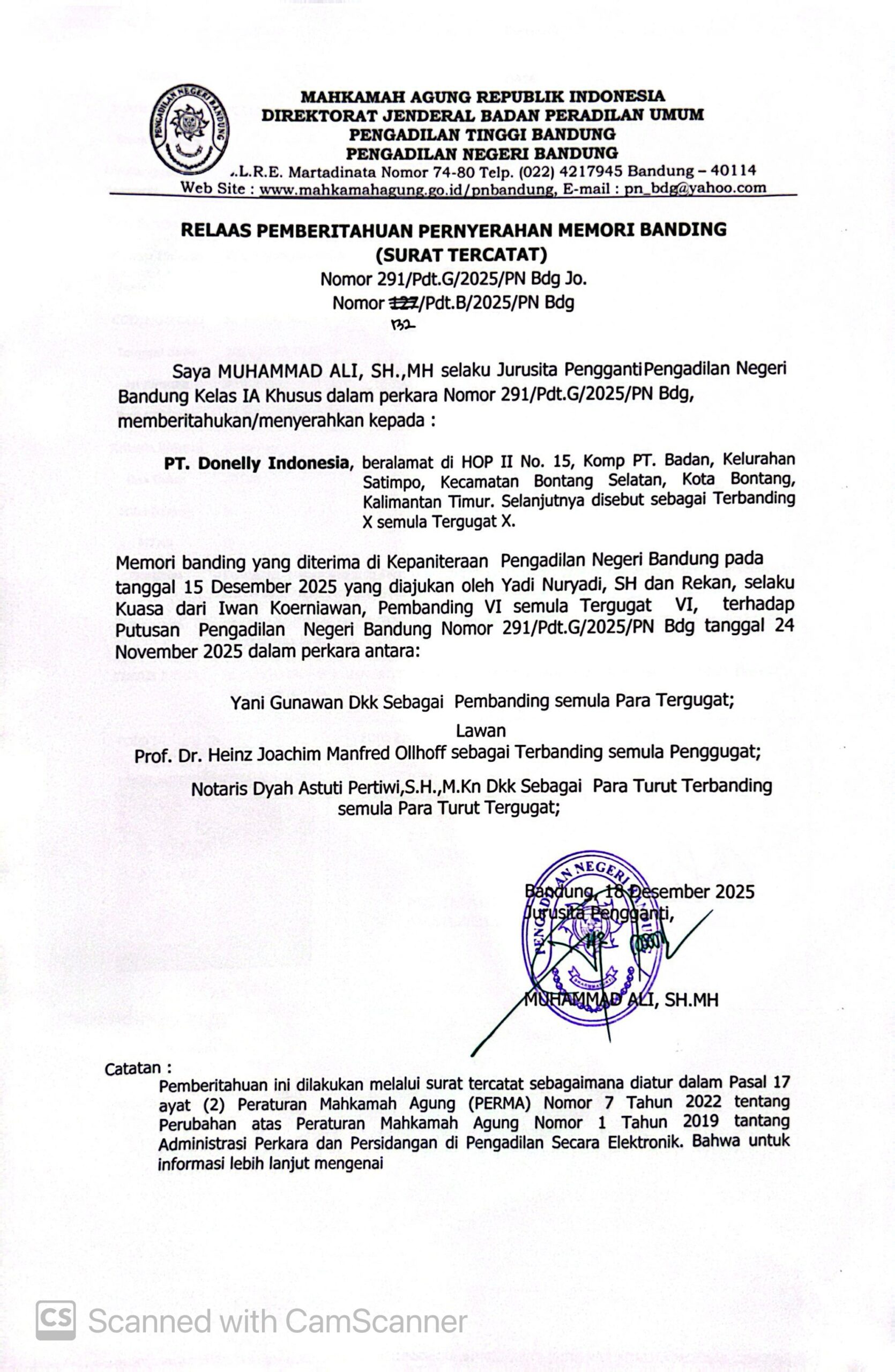 Nomor : 291/Pdt.G/2025/PN Bdg Jo. Nomor 131/Pdt.B/2025/PN Bdg