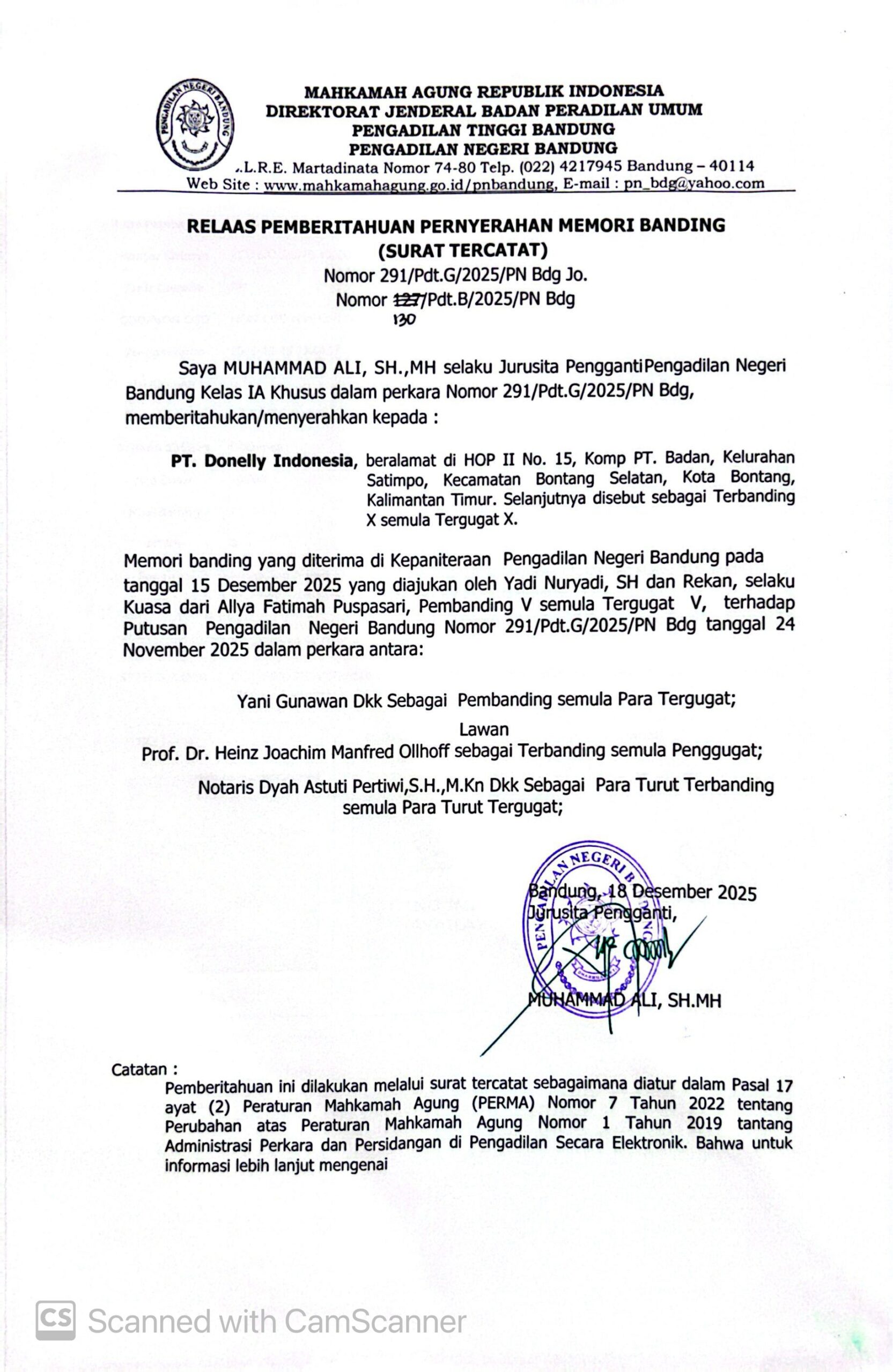 Nomor : 291/Pdt.G/2025/PN Bdg Jo. Nomor 130/Pdt.B/2025/PN Bdg