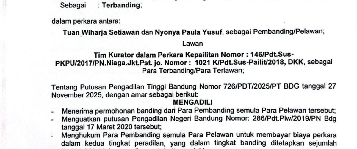 Nomor : 727/PDT/2025/PT Bdg Jo. Nomor 286/Pdt.Bth/2019/PN Bdg