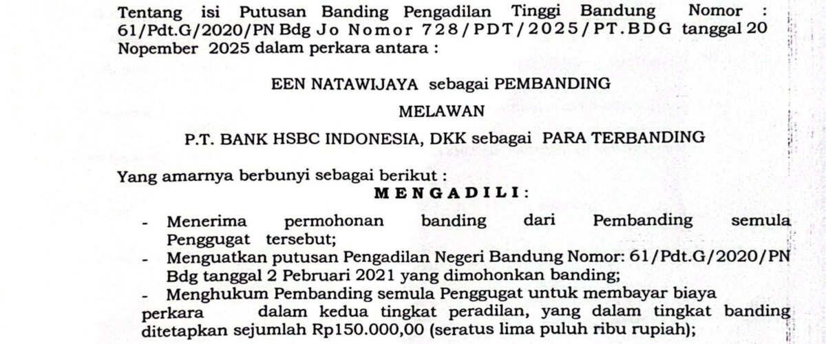 Nomor : 61/Pdt.G/2020/PN Bdg Jo. Nomor : 728/PDT/2025/PT BDG