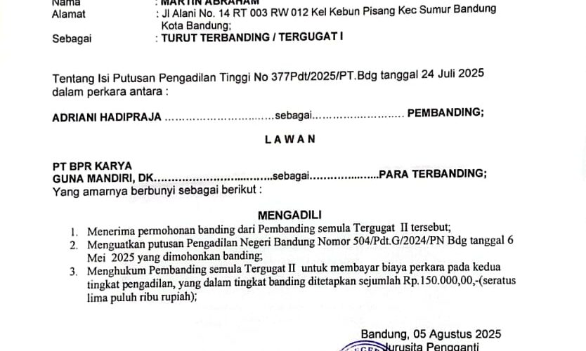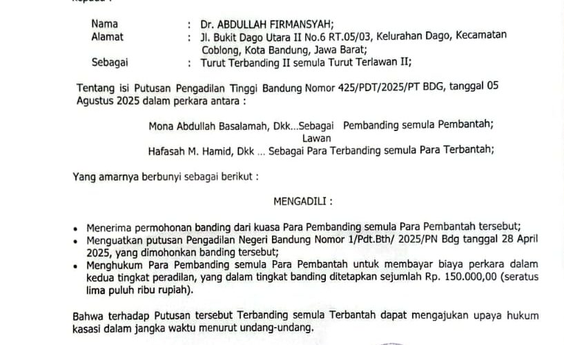Nomor : 425/PDT/2025/PT BDG Jo Nomor 1/Pdt.Bth/2025/PN Bdg Jo Nomor 40/Pdt.B/2025/PN Bdg