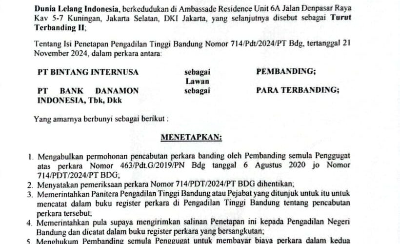 Nomor : 463/Pdt.G/2019/PN Bdg Jo Nomor 714/Pdt/2024/PT Bdg