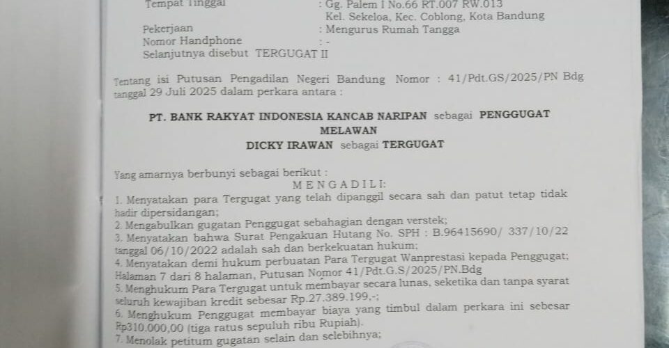 Nomor 297/Pdt.G/2024 PN Bdg jo Nomor 355/PDT/2025/PT.BDG