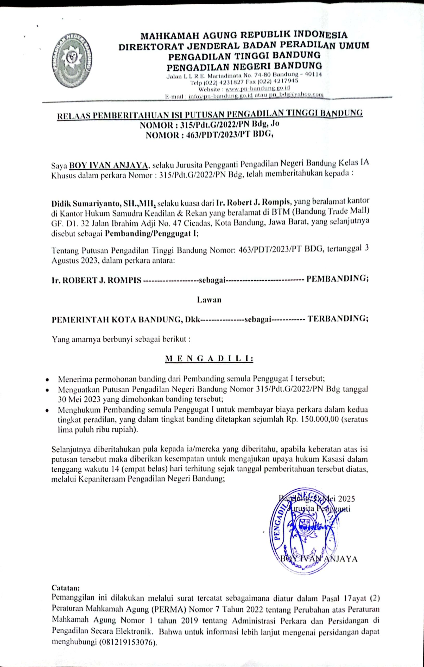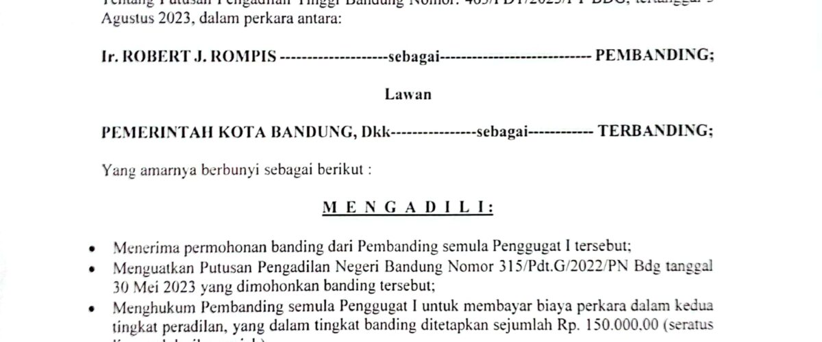 Nomor : 315/Pdt.G/2022/PN Bdg, Jo Nomor 463/Pdt/2023/PT BDG