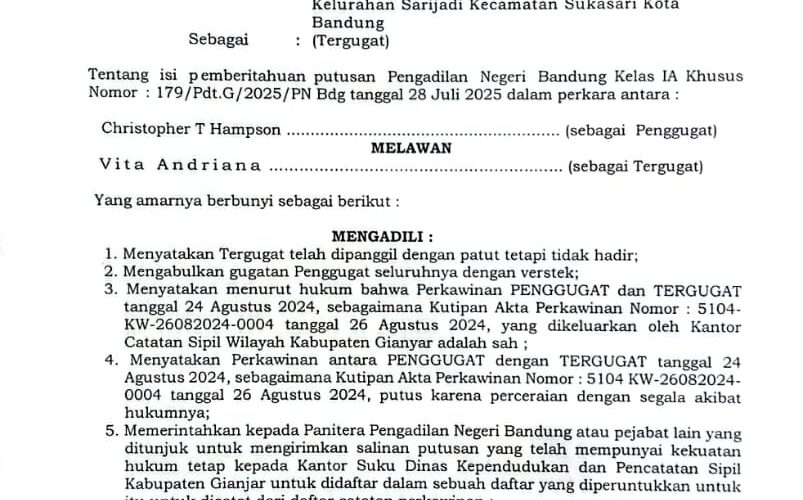 Nomor : 179/Pdt.G/2025/PN Bdg