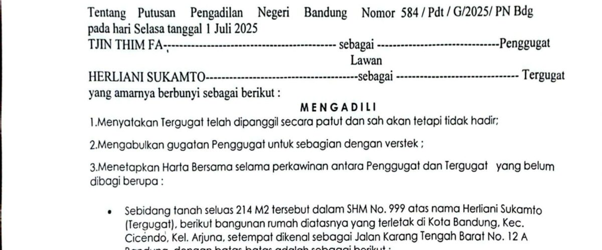 Nomor : 584/Pdt.G/2025/PN Bdg