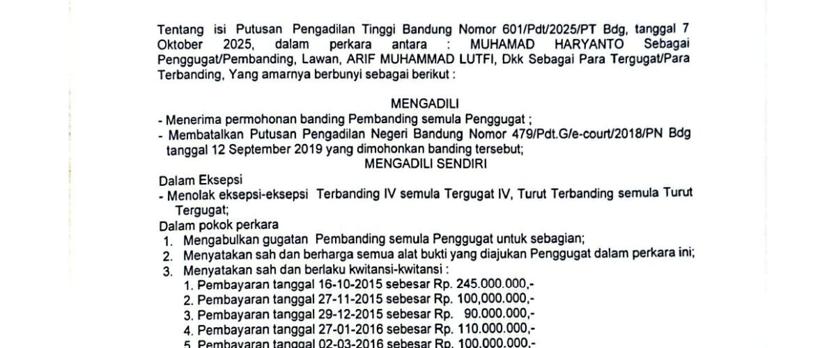 Nomor : 479/Pdt.G/2018/PN Bdg, Jo Nomor 601/Pdt/2025/PT Bdg