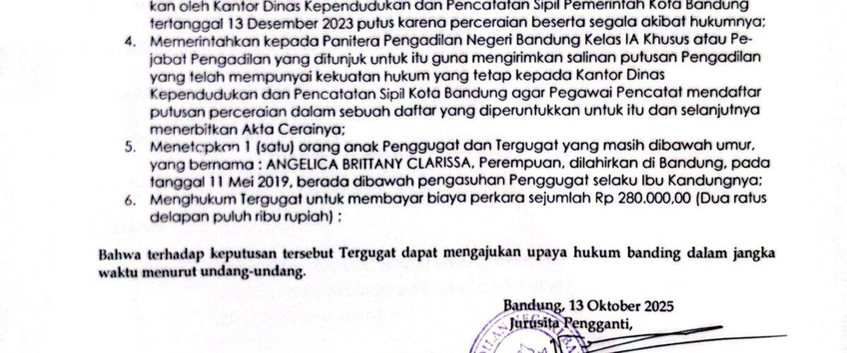 Nomor : 331/Pdt.G/2024/PN Bdg, Jo Nomor 19/Pdt.PK/2025/PN Bdg