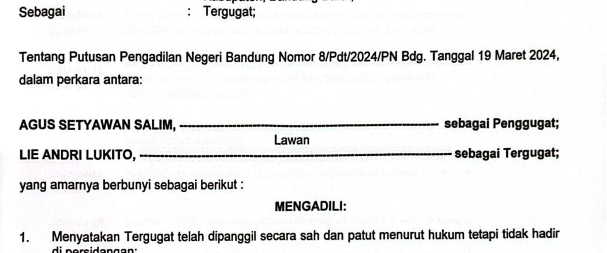 Nomor : 8/Pdt.G/2024/PN Bdg