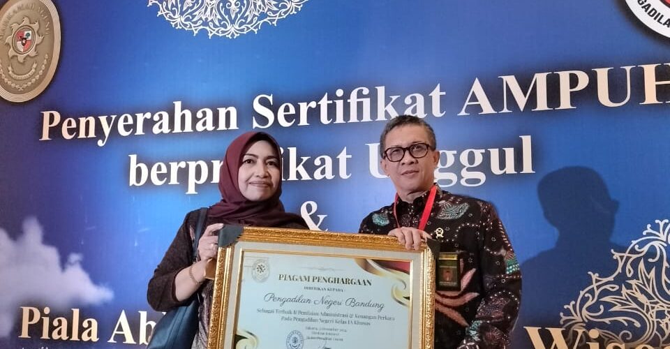 Penganugerahan diberikan oleh Pj. Walikota Bandung dan diterima oleh Sekretaris Pengadilan Negeri Bandung Henny Widyastuti