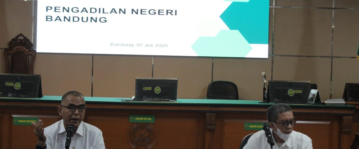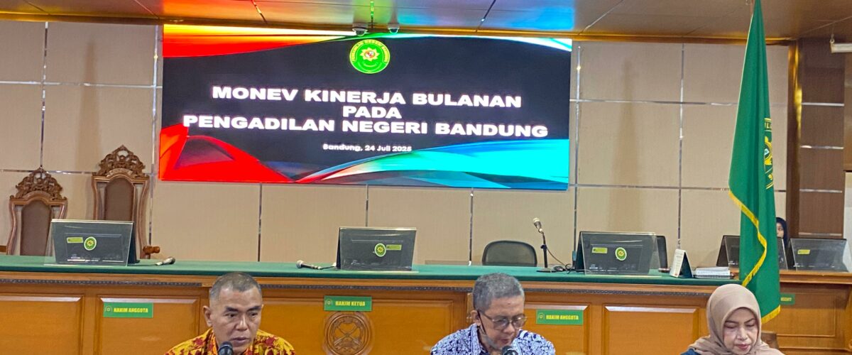 Bertempat di Ruang Sidang Utama Pengadilan Negeri Bandung telah dilaksanakan Rapat Monitoring dan Evaluasi Kinerja Bulan Juli 2025 Pengadilan Negeri Bandung yang dipimpin oleh Ketua Pengadilan Negeri Bandung Bapak Wahyu Iman Santoso, S.H. M.H. dan didampingi oleh Wakil Ketua dan Ibu Sekretaris Pengadilan Negeri Bandung. Rapat tersebut dihadiri oleh seluruh hakim dan seluruh pegawai Pengadilan Negeri Bandung.