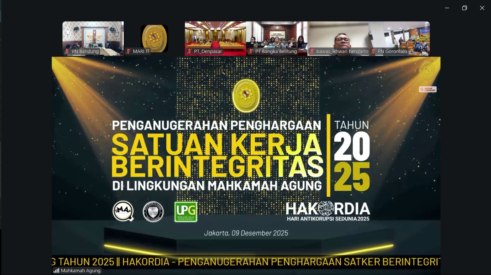 Penganugerahan Penghargaan Satuan Kerja Berintegritas Di Lingkungan Mahkamah Agung Tahun 2025