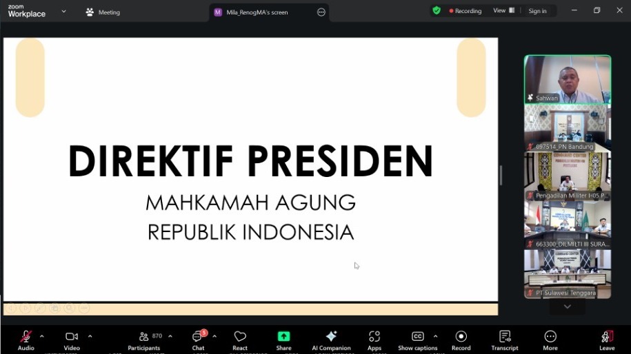Bertempat di Media Centre Pengadilan Negeri (PN) Bandung turut serta aktif dalam Rapat Koordinasi Penguatan Dukungan Pelaksanaan Prioritas Direktif Presiden Tahun Anggaran (TA) 2026. Kegiatan penting yang diselenggarakan secara virtual melalui aplikasi Zoom Meeting ini diikuti oleh perwakilan PN Bandung Rapat koordinasi ini merupakan agenda strategis yang bertujuan untuk menyelaraskan...