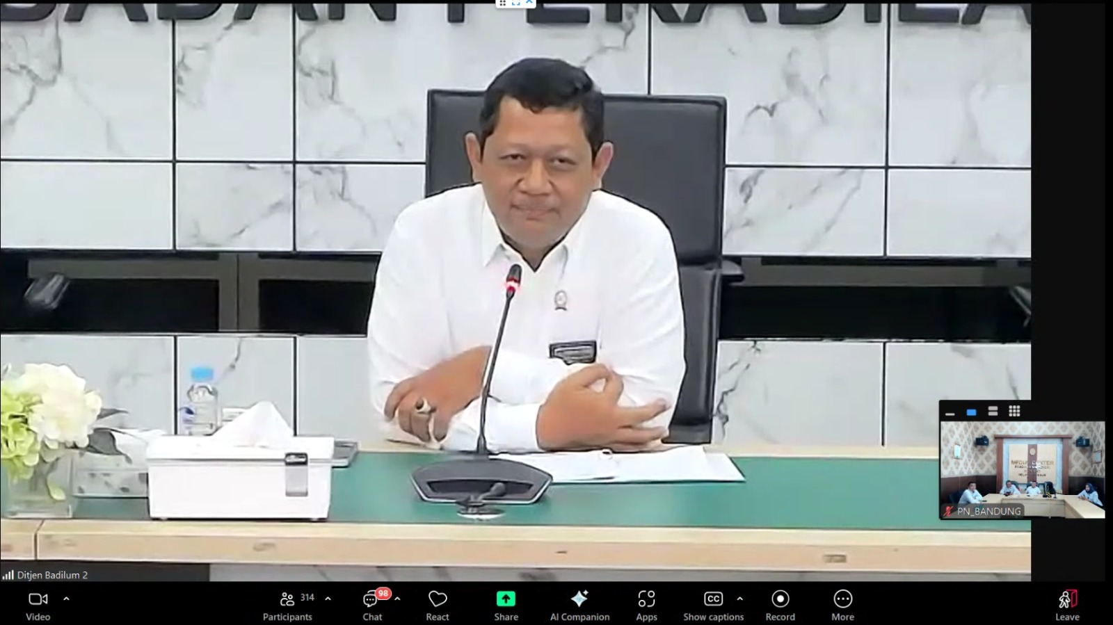 January 14, 2025Bandung, 14 Januari 2025 Pengadilan Negeri Bandung mengikuti Zoom Sosialisasi Petunjuk Teknis Pelaksanaan, Penyusunan, dan Penyampaian Laporan Pengawasan dan Pengendalian Barang Milik Negara (BMN) Semester II dan Tahunan Tahun 2024 Pada Siman V2 ...