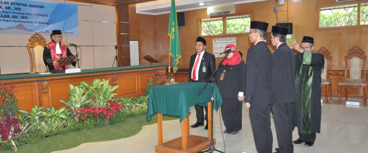 (Bandung,22/03/19) Ketua Pengadilan Negeri Bandung Kelas 1A Khusus Edison M., SH., M.H. melantik dan mengambil sumpah jabatan Mohammad Nur Fitriyadi, S.kom., M.Kom. sebagai Kepala Sub Bagian Kepegawaian, Organisasi Dan Tata Laksana. pada hari Jumat tanggal 22 Maret 2019 di Ruang Sidang Utama Kantor Pengadilan Negeri Bandung Kelas 1A Khusus.