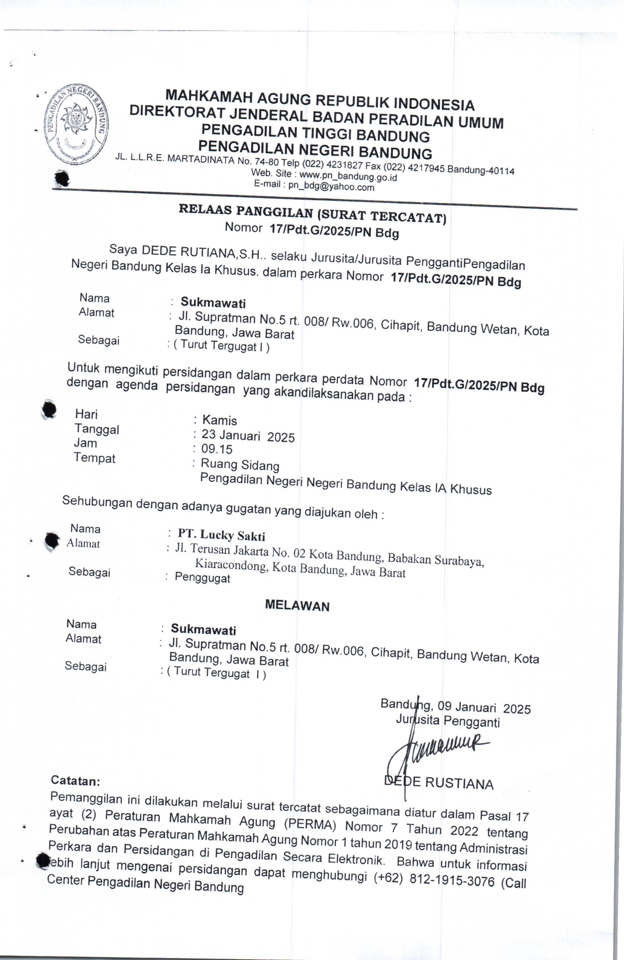 Relaas Panggilan Nomor 17/Pdt.G/2025/PN Bdg
