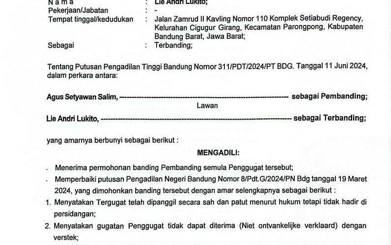 Relaas Pemberitahuan Putusan 8/Pdt.G/2024/PN Bdg