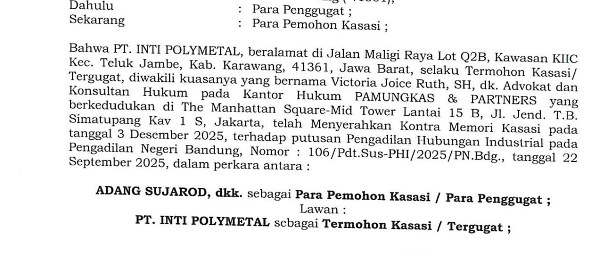 Nomor : 104/Kas/G/2025/PHI/PN Bdg Jo. Nomor : 106/Pdt.Sus-PHI/2025/PN Bdg