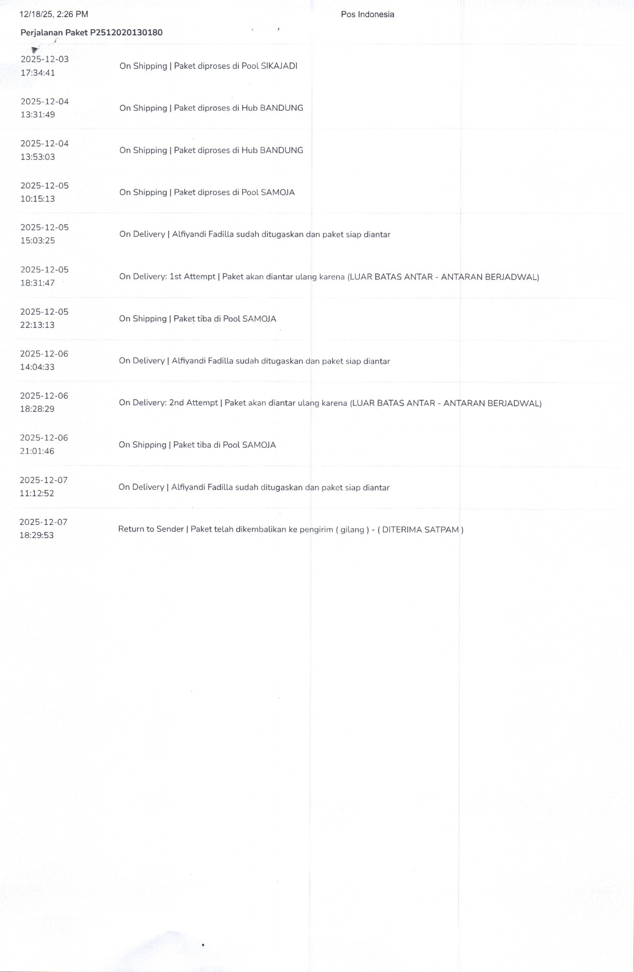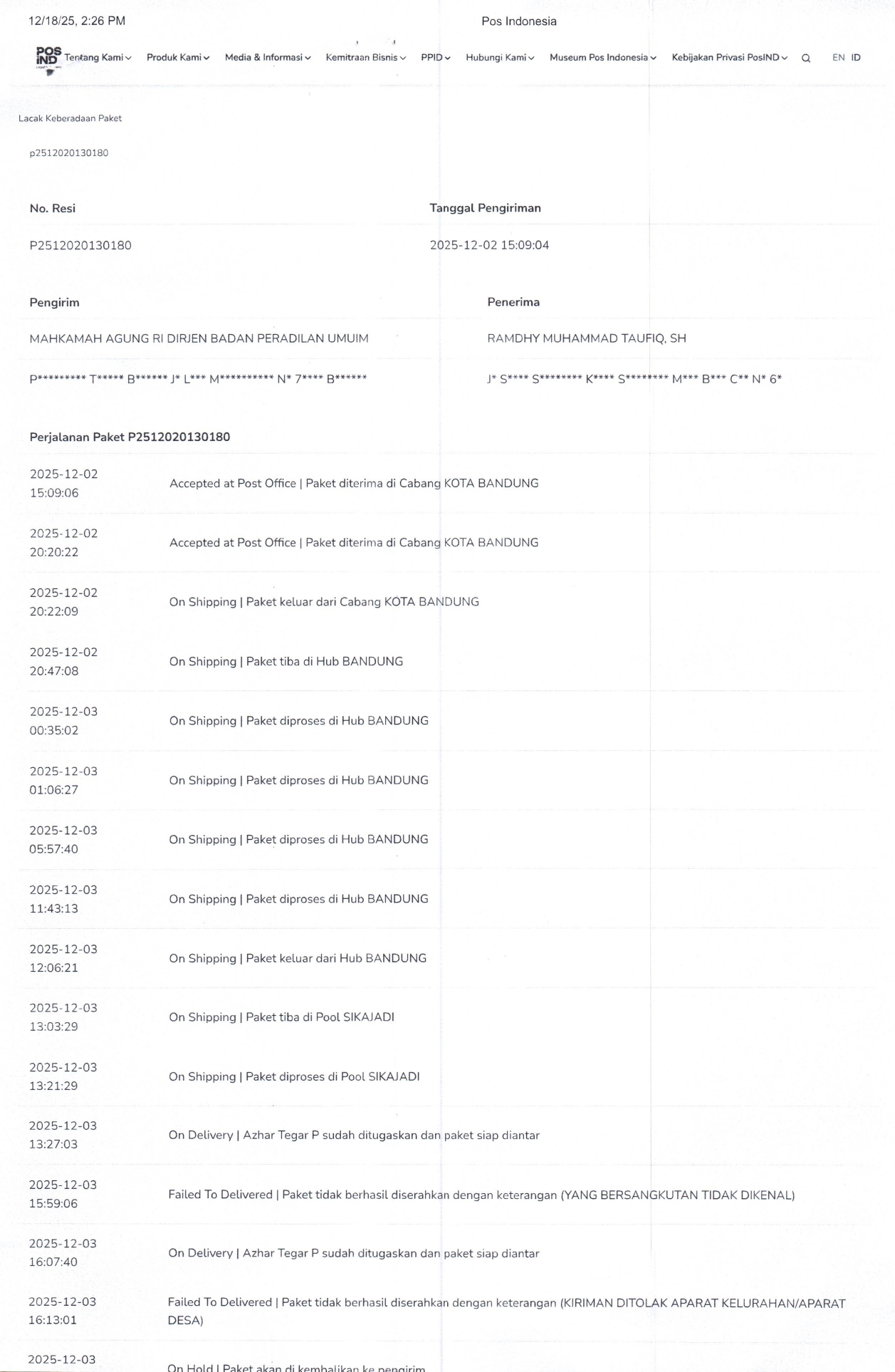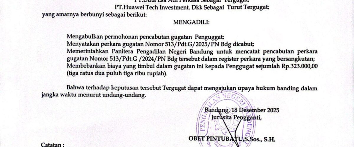 Relaas Pemberitahuan Putusan Nomor 513/Pdt.G/2025/PN Bdg