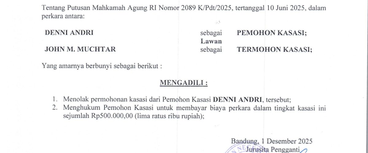 Nomor : 2089 K/Pdt/2025 Jo. Nomor 437/PDT/2023/PT BDG Jo. Nomor 477/Pdt.G/2022/PN Bdg