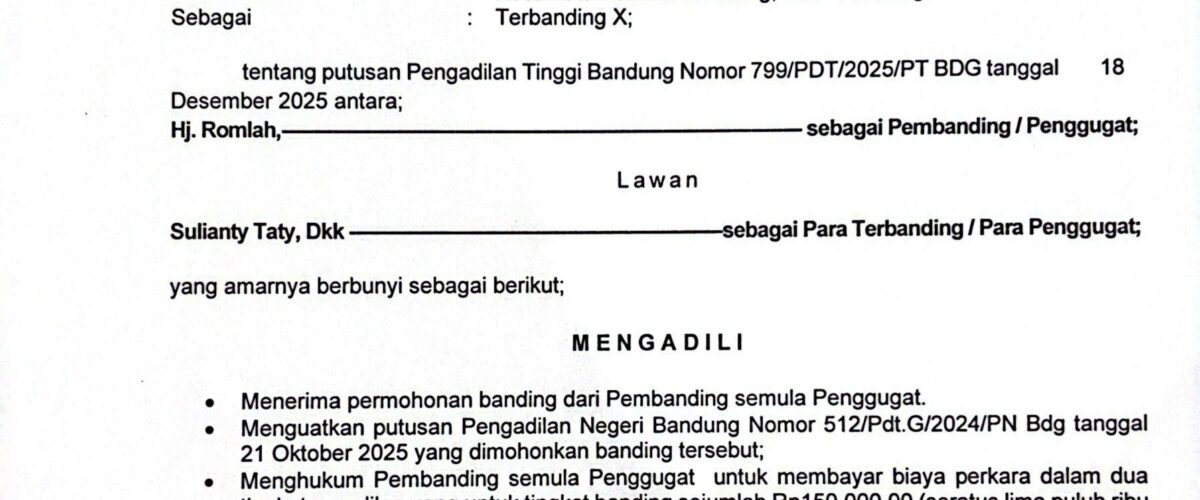 Nomor : 291/Pdt.G/2025/PN Bdg Jo. 132/Pdt.B/2025/PN Bdg