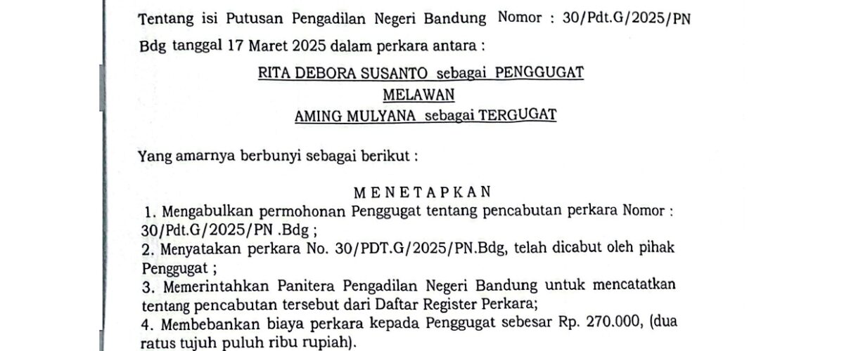 Relaas Pemberitahuan Putusan 30/Pdt.G/2025/PN Bdg