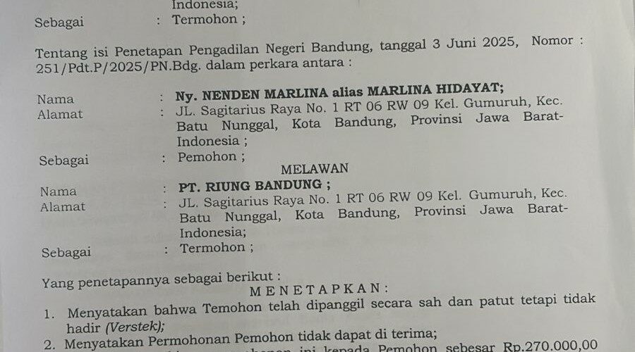 Relaas Pemberitahuan Putusan 251/Pdt.P/2025/PN Bdg