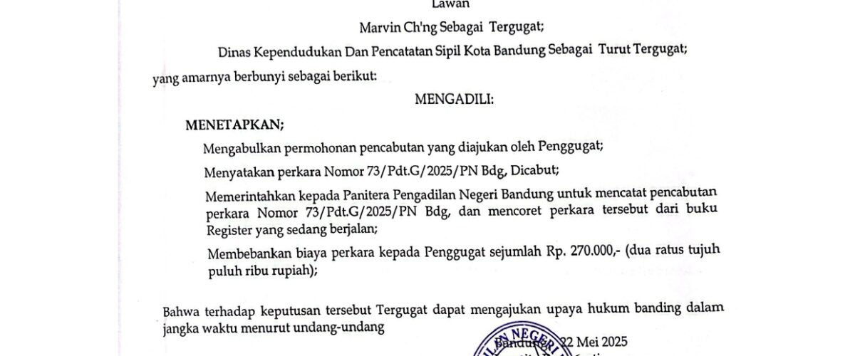 Relaas Pemberitahuan Putusan 73/Pdt.G/2025/PN Bdg