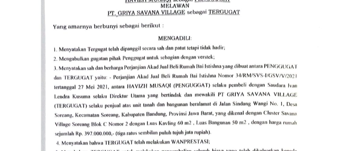 Nama : PT. Griya Savana Village Cq. Direktur Utama Ivan Lendra Kusuma
