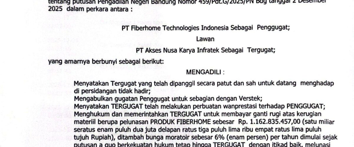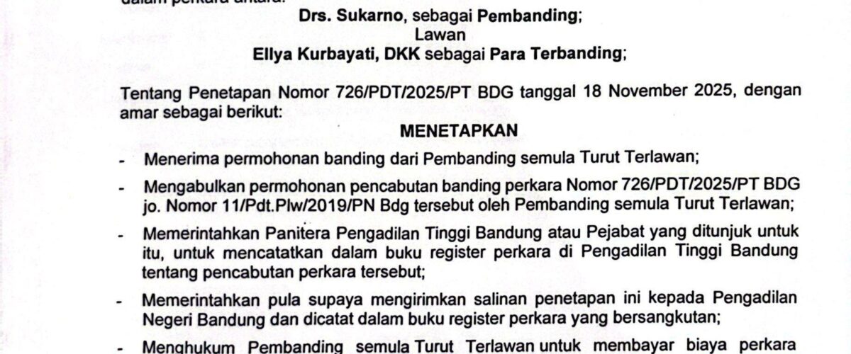 Nomor : 726/PDT/2025/PT BDG Jo. Nomor 11/Pdt.Bth/2019/PN Bdg