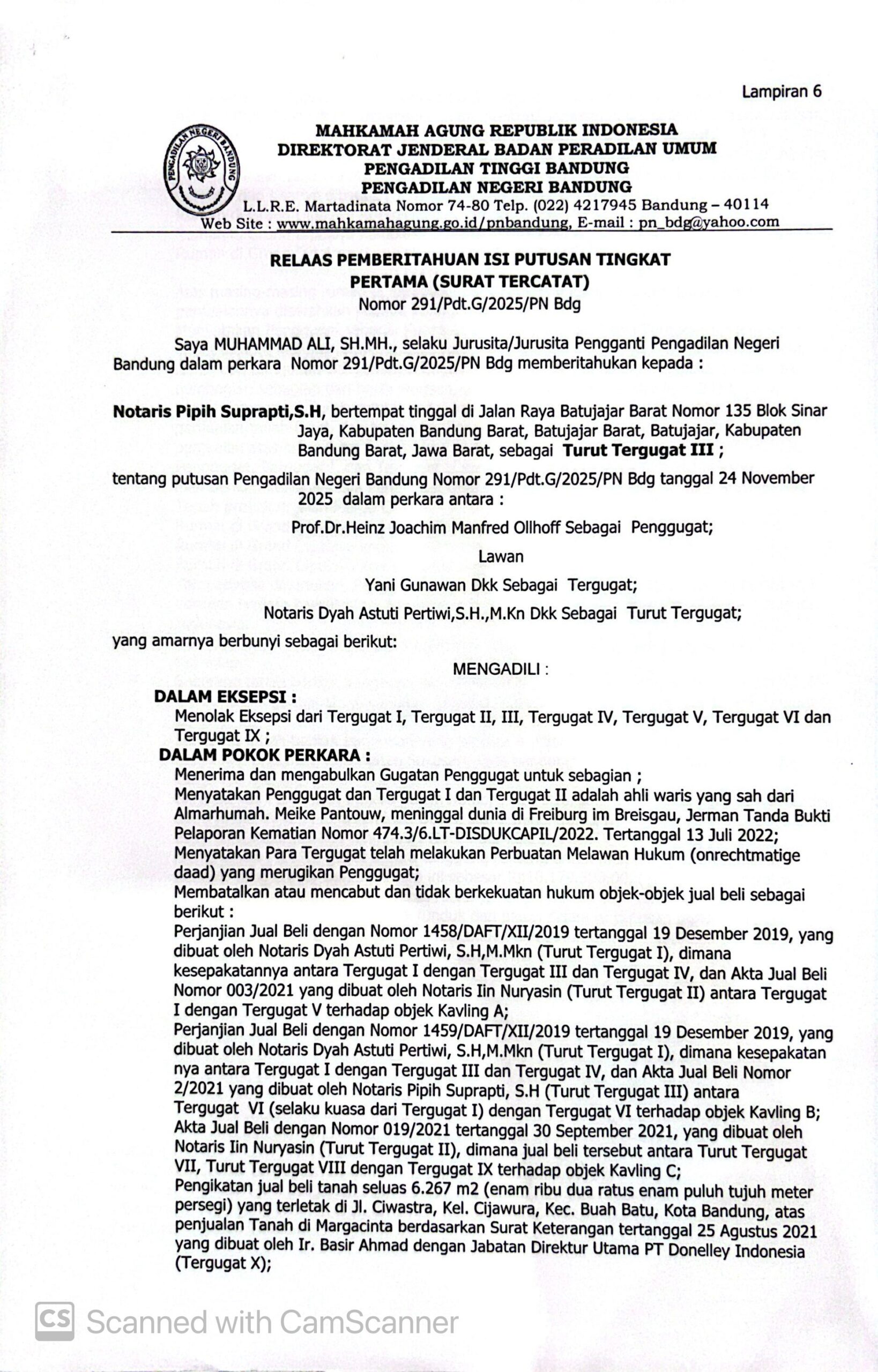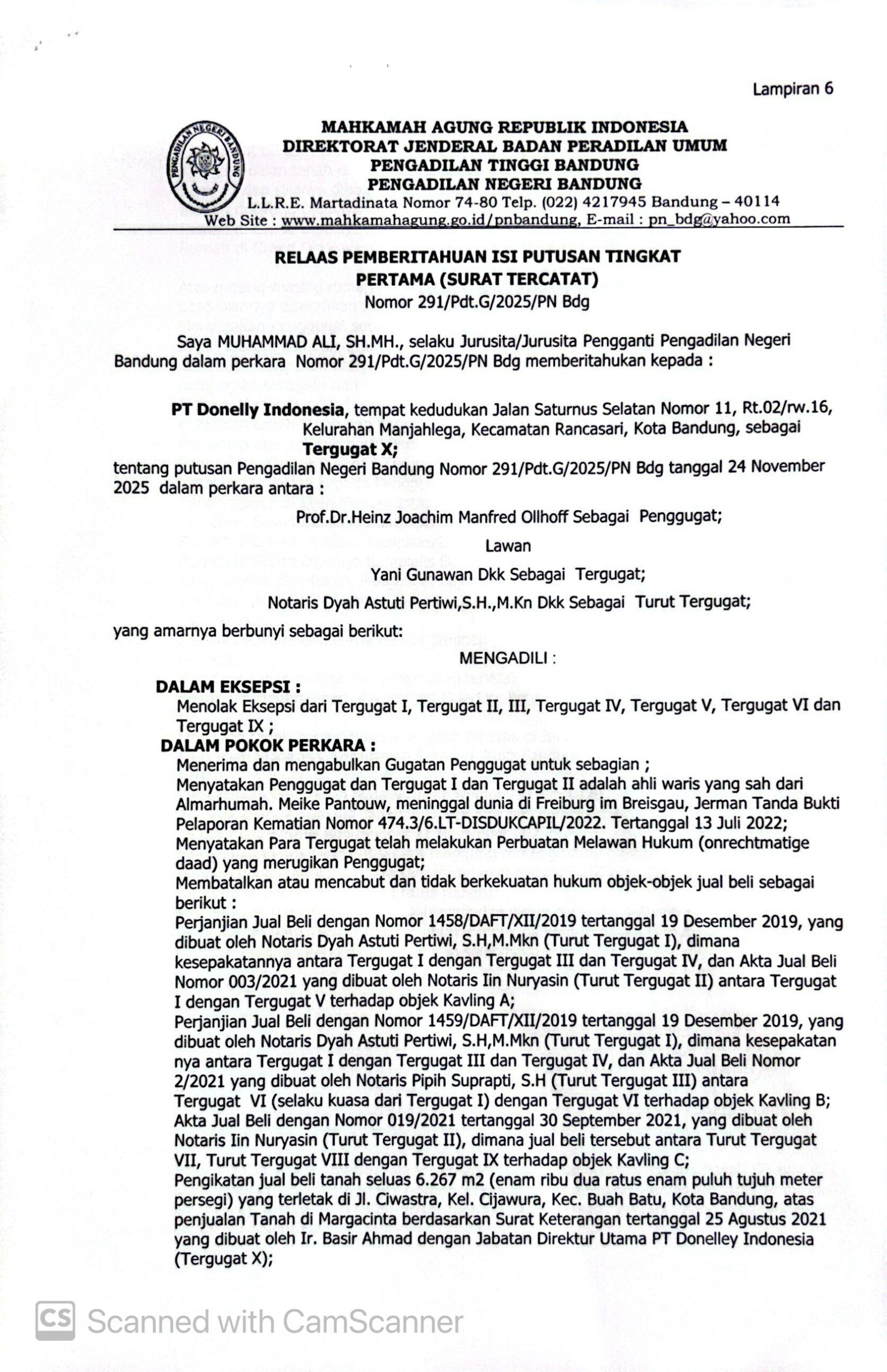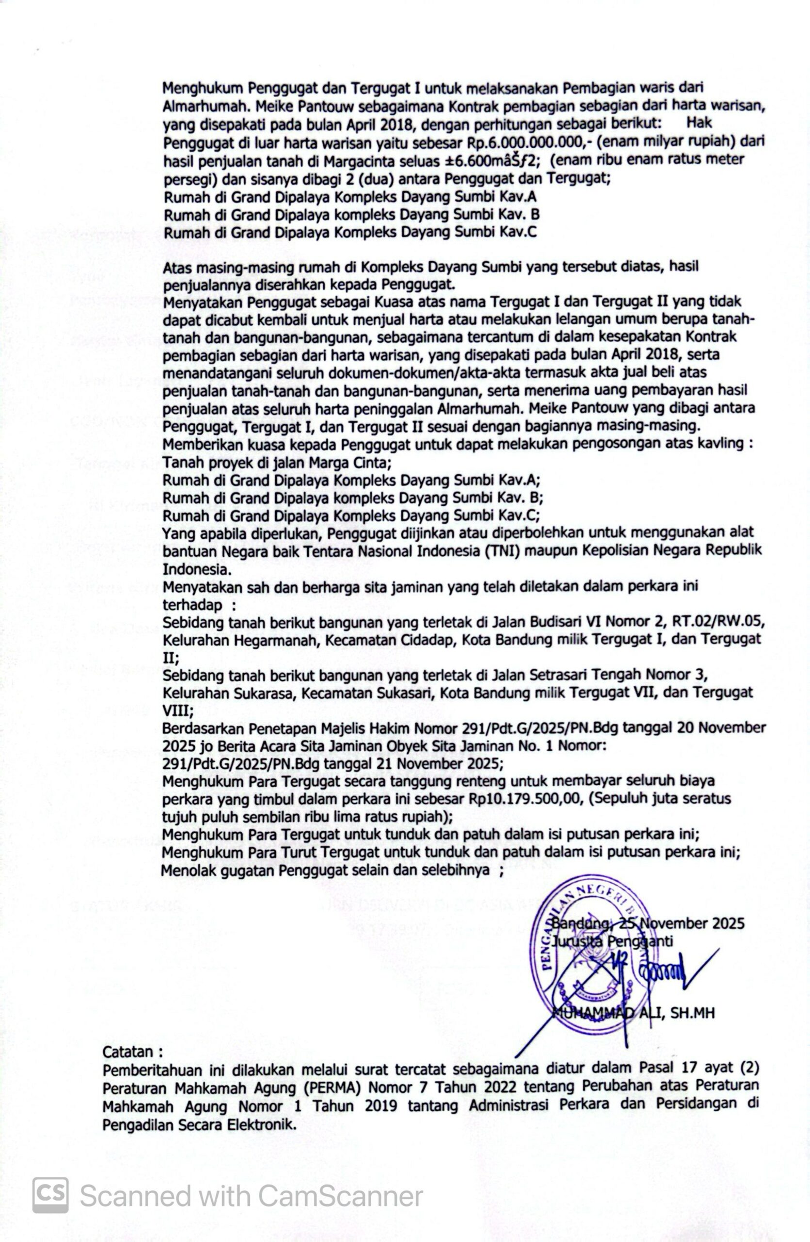 Nomor : 291/Pdt.G/2025/PN Bdg