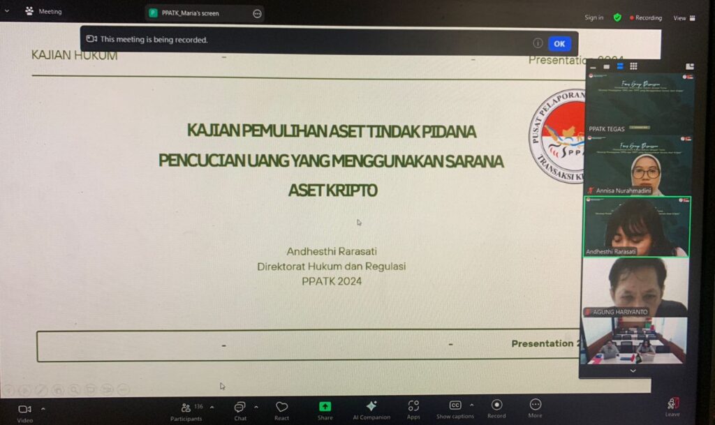 Bertempat di media Centre Pengadilan Negeri Bandung telah mengikuti Focus Group Discussion(FGD) dengan tema Strategi Penanganan TPPU dan TPPT Yang menggunakan Sarana Aset Kripto Melalui virtual zoom yang dilaksanakan pada hari selasa – rabu pukul 09.00 WIB.