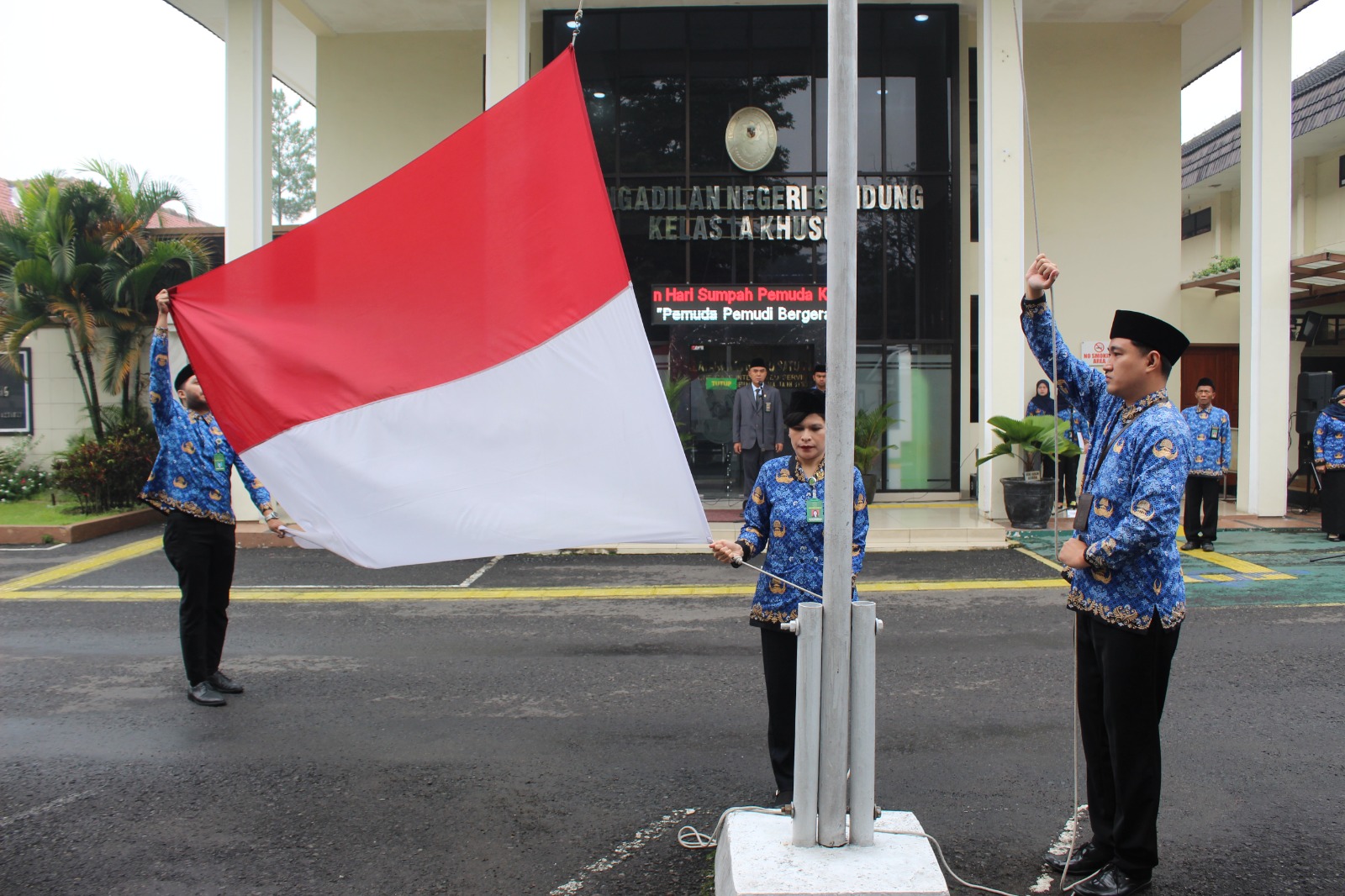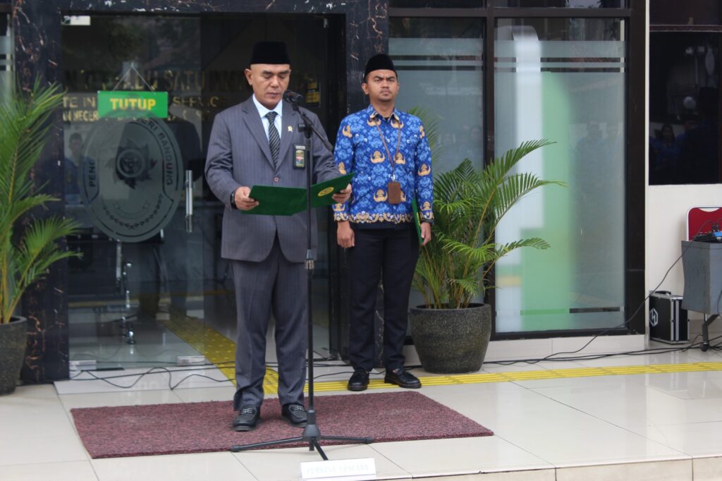 Dalam rangka memperingati Hari Sumpah Pemuda yang ke-97, Pengadilan Negeri Bandung melaksanakan upacara bendera di halaman kantor pada Selasa pagi, 28 Oktober 2025. Upacara kali ini mengusung tema “Pemuda Pemudi Bergerak Indonesia Bersatu,” sebagai bentuk semangat persatuan dan kemajuan bersama.