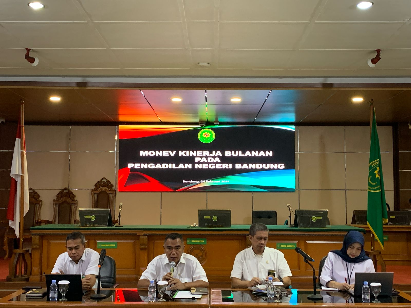 Bertempat di Ruang Sidang Utama Pengadilan Negeri Bandung telah dilaksanakan Rapat Monitoring dan Evaluasi Kinerja bulan Febuari Tahun 2025 Pengadilan Negeri Bandung yang dipimpin oleh Ketua Pengadilan Negeri Bandung, Bapak Wahyu Iman Santoso, S.H. M.H. dan didampingi oleh Waikil Ketua, Panitera Muda Pidana dan Ibu Sekretaris Pengadilan Negeri Bandung. Rapat tersebut dihadiri oleh seluruh hakim dan seluruh pegawai Pengadilan Negeri Bandung.