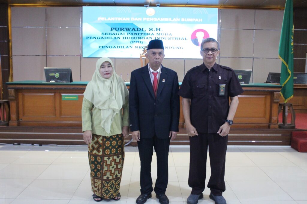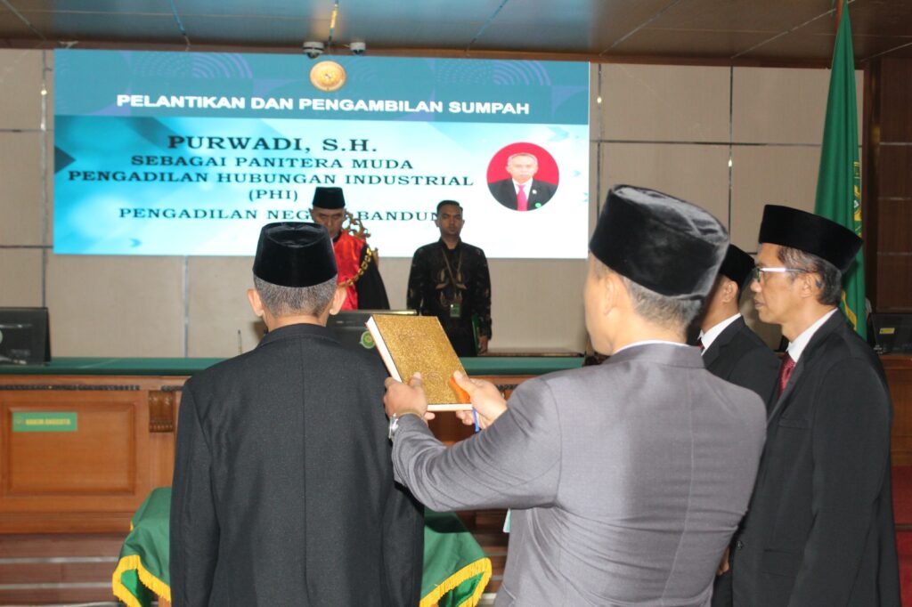 Bandung, 3 September 2025 – Pengadilan Negeri Bandung melaksanakan acara Pelantikan dan Pengambilan Sumpah Jabatan Panitera Muda Hubungan Industrial (PHI) pejabat yang dilantik dalam acara ini adalah Bapak Purwadi, S.H. yang sebelumnya menjabat sebagai Panitera Muda Pidana PN Jakarta Timur dan kini dipromosikan menjadi Panitera Muda Khusus Penyelesaian Perselisihan Hubungan Industrial (PHI) PN Bandung.