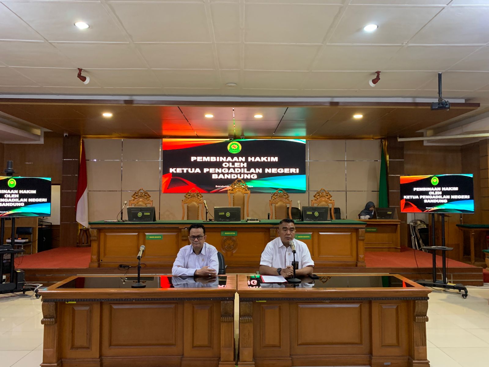 (Senin, 12/08/2024), Pengadilan Negeri Bandung melakukan Pembinaan Hakim oleh ketua Pengadilan Negeri Bandung Bapak Wahyu Iman Santoso, S.H., M.H.yang bertempat di Ruang Sidang Utama yang diikuti seluruh Hakim Pengadilan Negeri Bandung. Kegiatan Pembinaan ini dilakukan rutin setiap bulannya untuk monitoring dan evaluasi yang lebih baik lagi dalam Pelayanan maupun profesionalisme dalam bekerja.