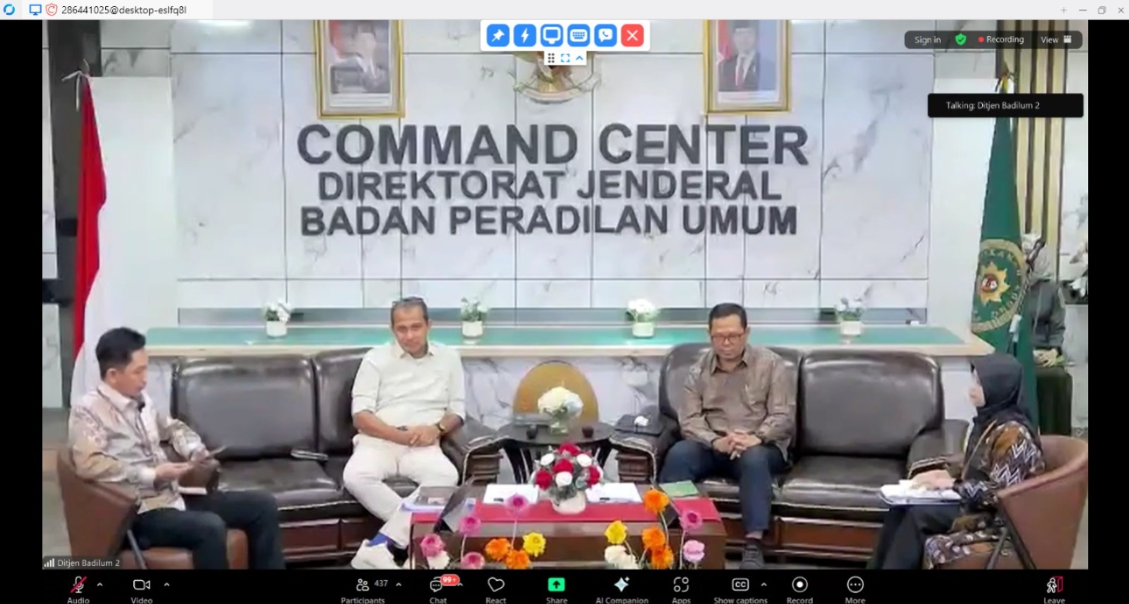 Bandung, 11 Maret 2025 Pengadilan Negeri Bandung, mengikuti Pertemuan Rutin dan Sarasehan Interaktif Badan Peradilan Umum (Perisai Badilum) Episode 5 Tahun 2025 secara daring melalui aplikasi Zoom Meeting. Pertemuan ini berlangsung dari pukul 08.30 hingga 12.00 WIB, dan diselenggarakan di ruang Media Center Pengadilan Negeri Bandung. Acara ini diikuti Para Hakim yang turut berpartisipasi dalam diskusi dan pembelajaran. Pada Episode ke-5 kali ini, Perisai Badilum mengangkat tema “Implikasi Undang-Undang Nomor 1 Tahun 2023 Tentang Kitab Undang-Undang Hukum Pidana Terhadap Sistem Peradilan Pidana di Indonesia.” Tema ini sangat relevan dengan perkembangan hukum pidana di Indonesia menjelang berlakunya Kitab Undang-Undang Hukum Pidana Nasional tersebut. Diskusi ini bertujuan untuk memahami dan internalisasi Kitab Undang-Undang Hukum Pidana Nasional. Acara ini menghadirkan narasumber yang sangat kompeten di bidangnya, yaitu Yth. Prof. Edward Omar Sharif Hiariej, S.H., M.Hum, Guru Besar Ilmu Hukum Pidana Fakultas Hukum Universitas Gajah Mada, dan Yth. Prof. Dr. Topo Santoso, S.H., M.H, Guru Besar Ilmu Hukum Pidana Fakultas Hukum Universitas Indonesia. Melalui pemaparan dan diskusi yang mendalam, diharapkan seluruh peserta dapat memahami lebih jauh tentang perubahan hukum yang terjadi.