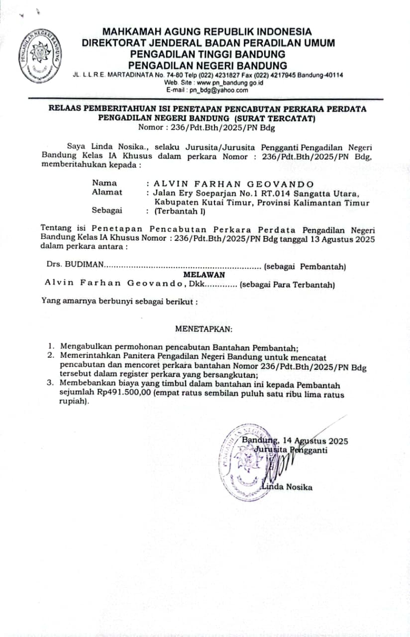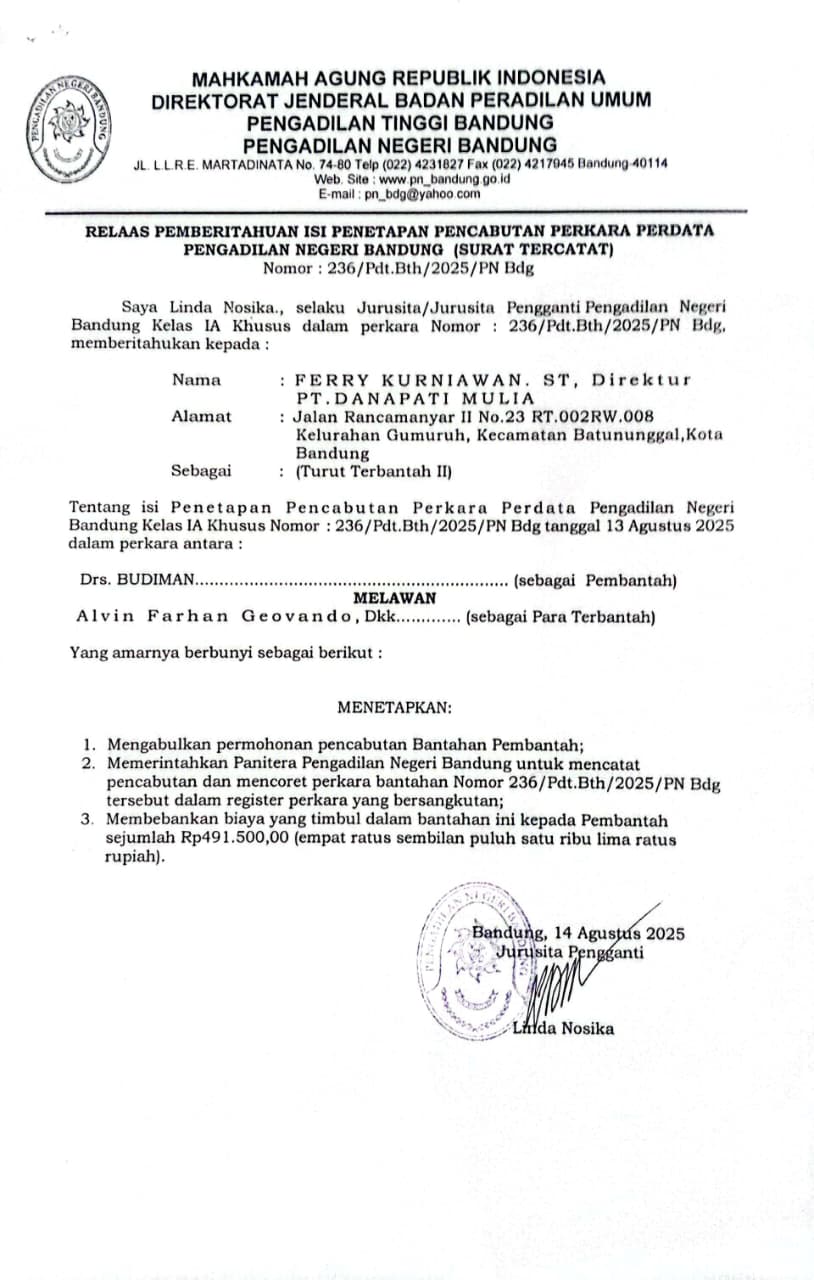 Nomor : 236/Pdt.Bth/2025/PN Bdg