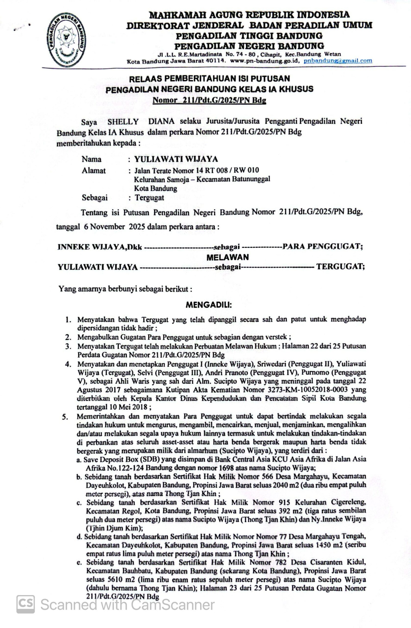 Nomor : 211/Pdt.G/2025/PN Bdg