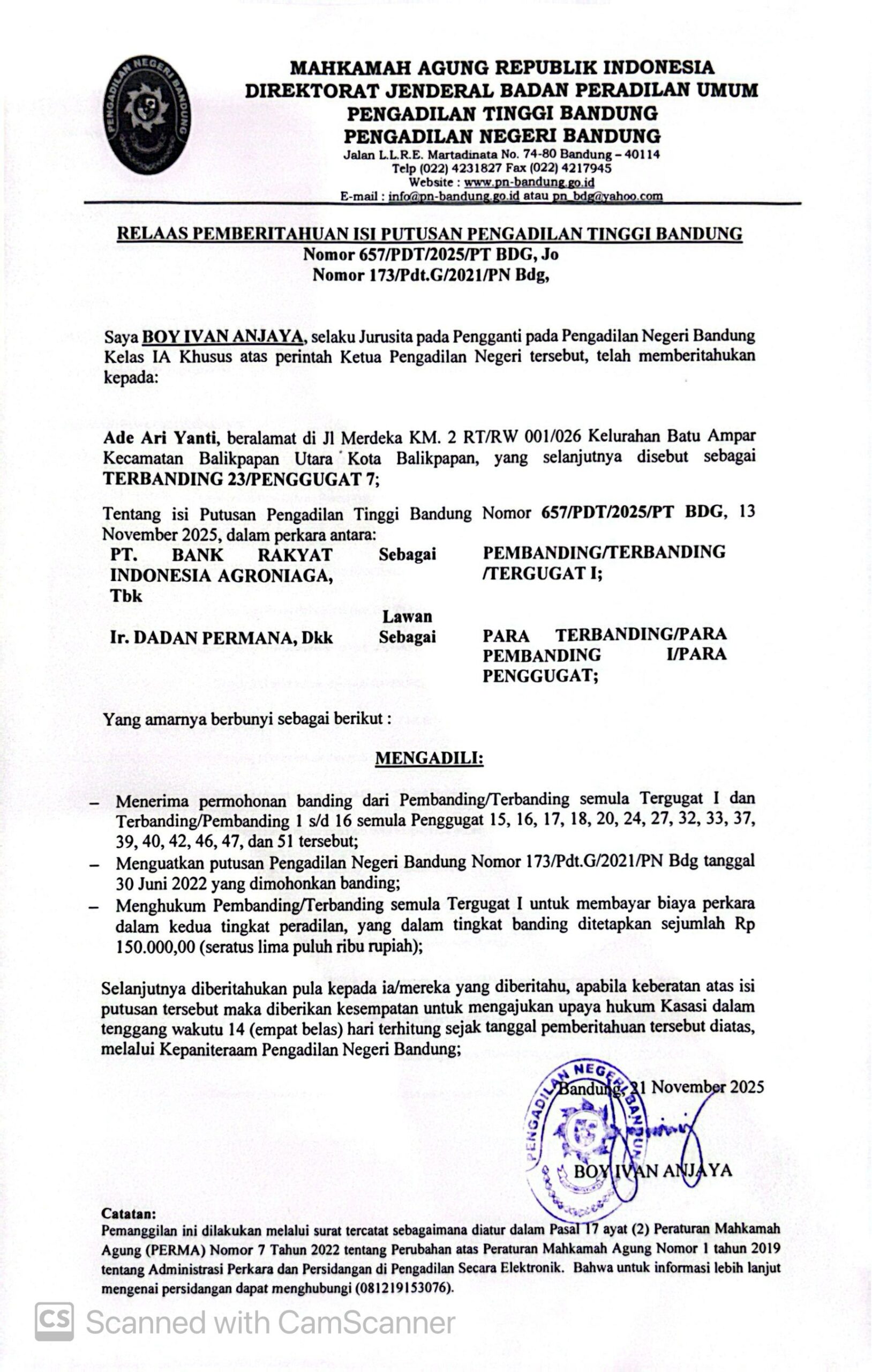 Nomor : 657/PDT/2025/PT BDG, Jo. Nomor 173/Pdt.G/2021/PN Bdg