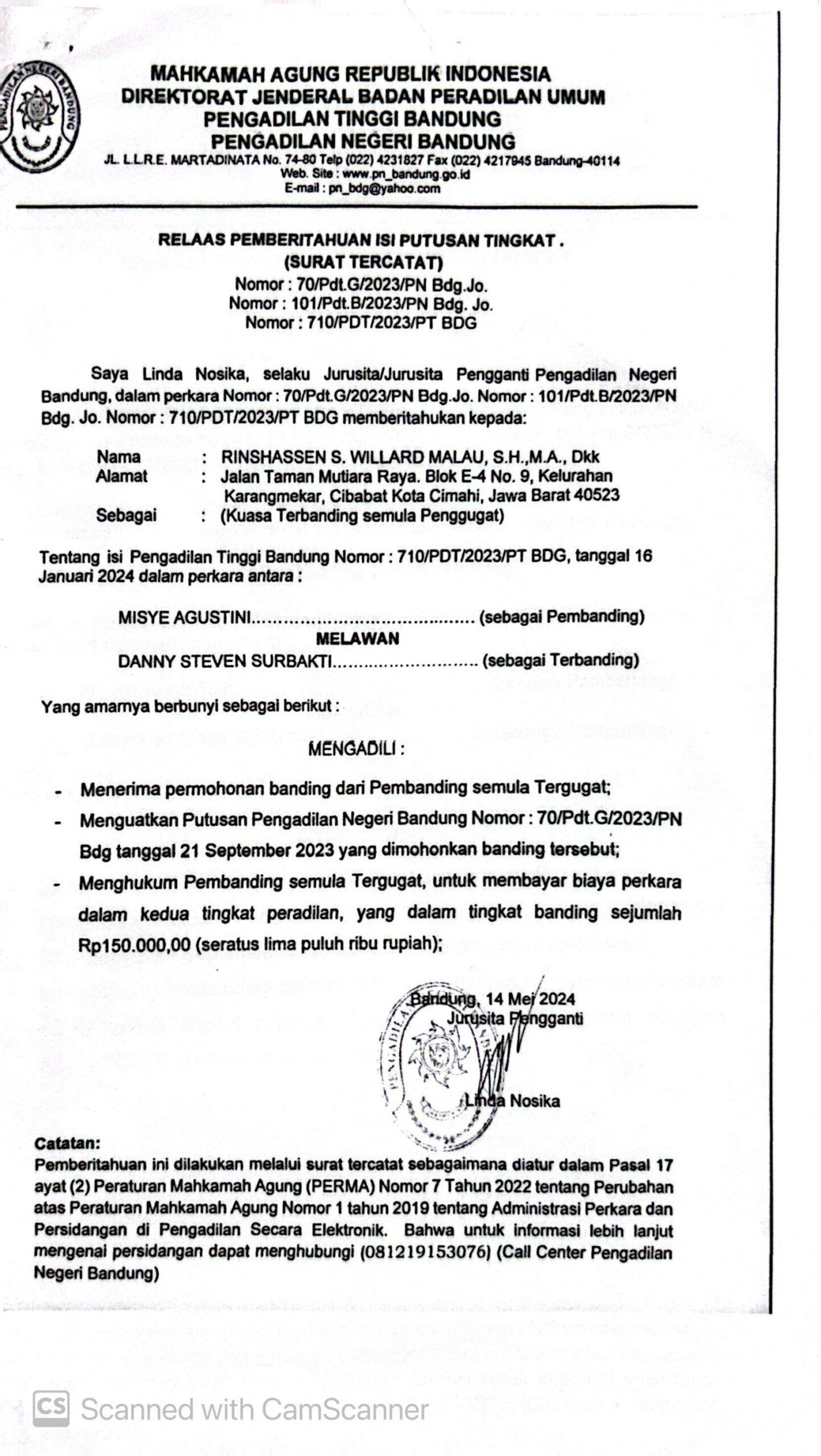 Nomor : 70/Pdt.G/2023/PN Bdg Jo. Nomor : 101/Pdt.B/2023/PN Bdg Jo. Nomor : 710/PDT/2023/PT BDG