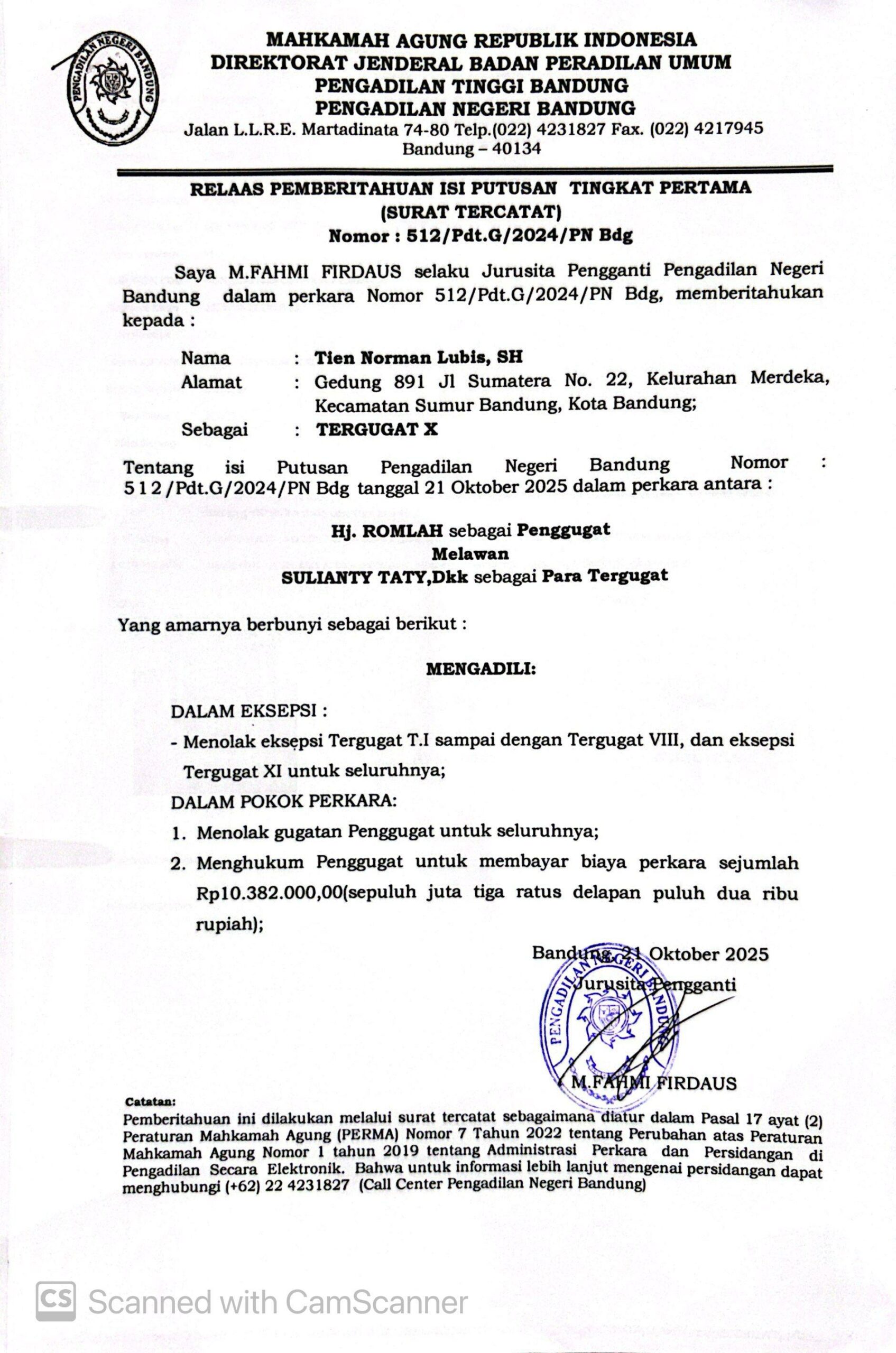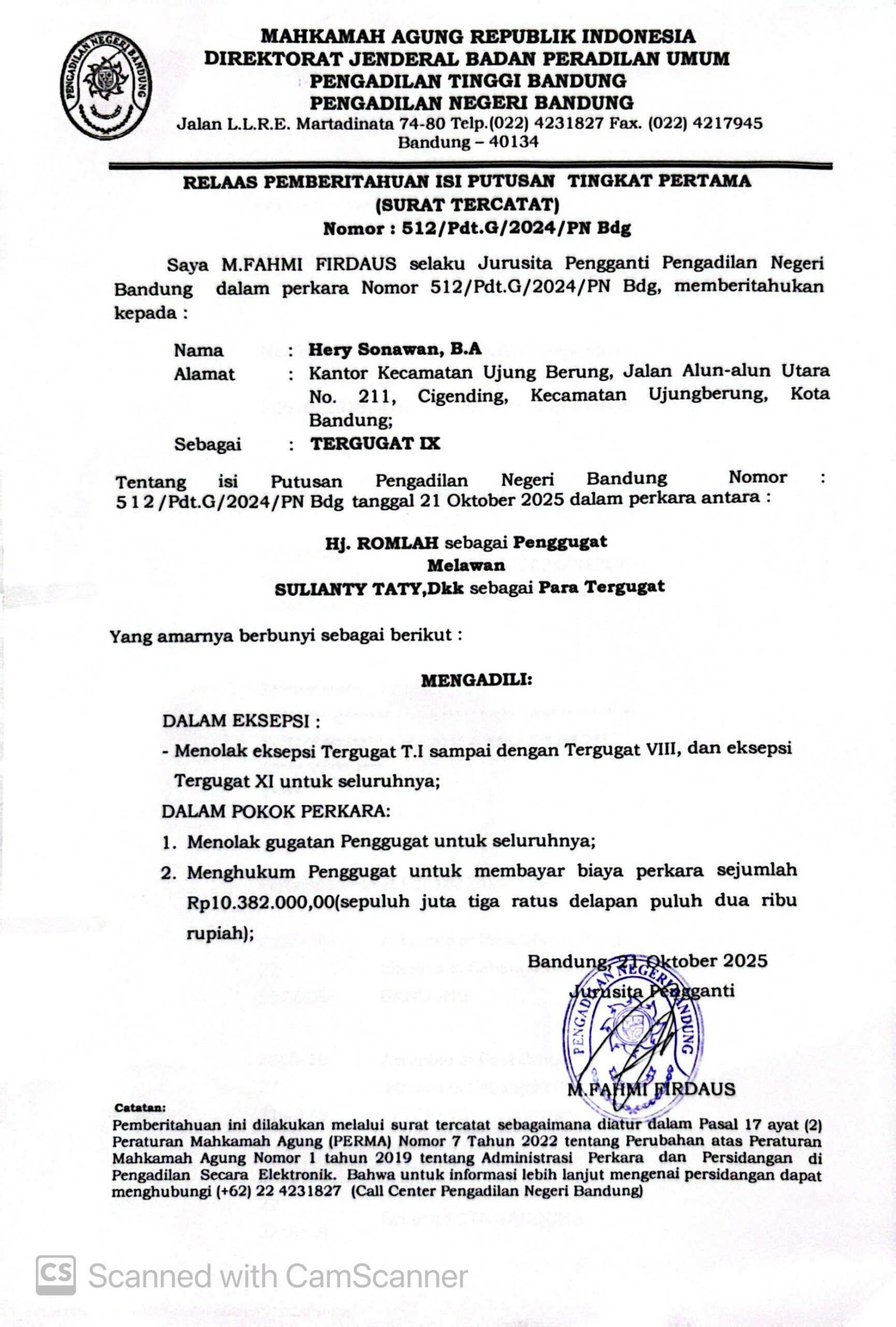 Nomor : 512/Pdt.G/2024/PN Bdg