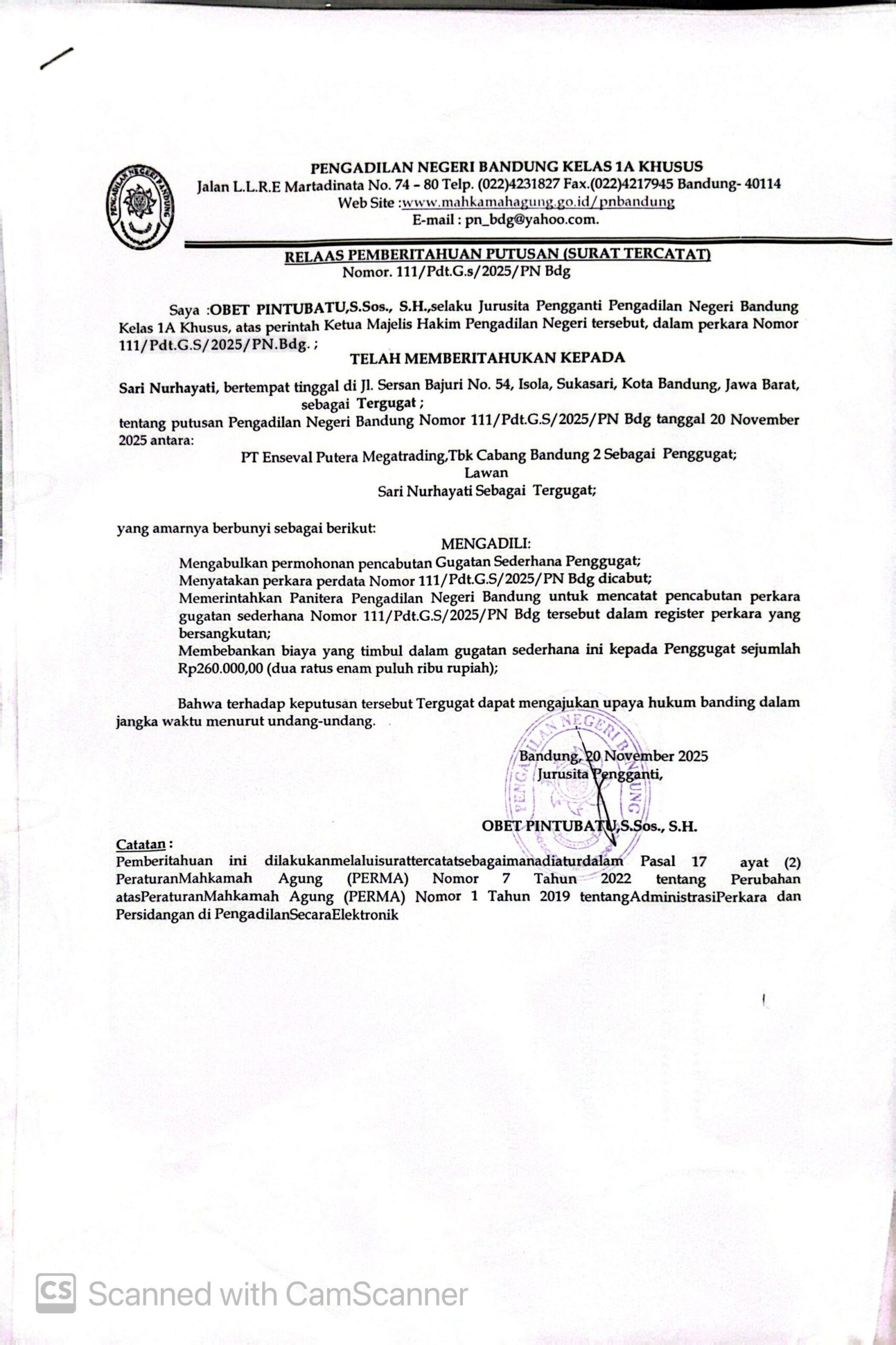 Nomor : 111/Pdt.G.S/2025/PN Bdg