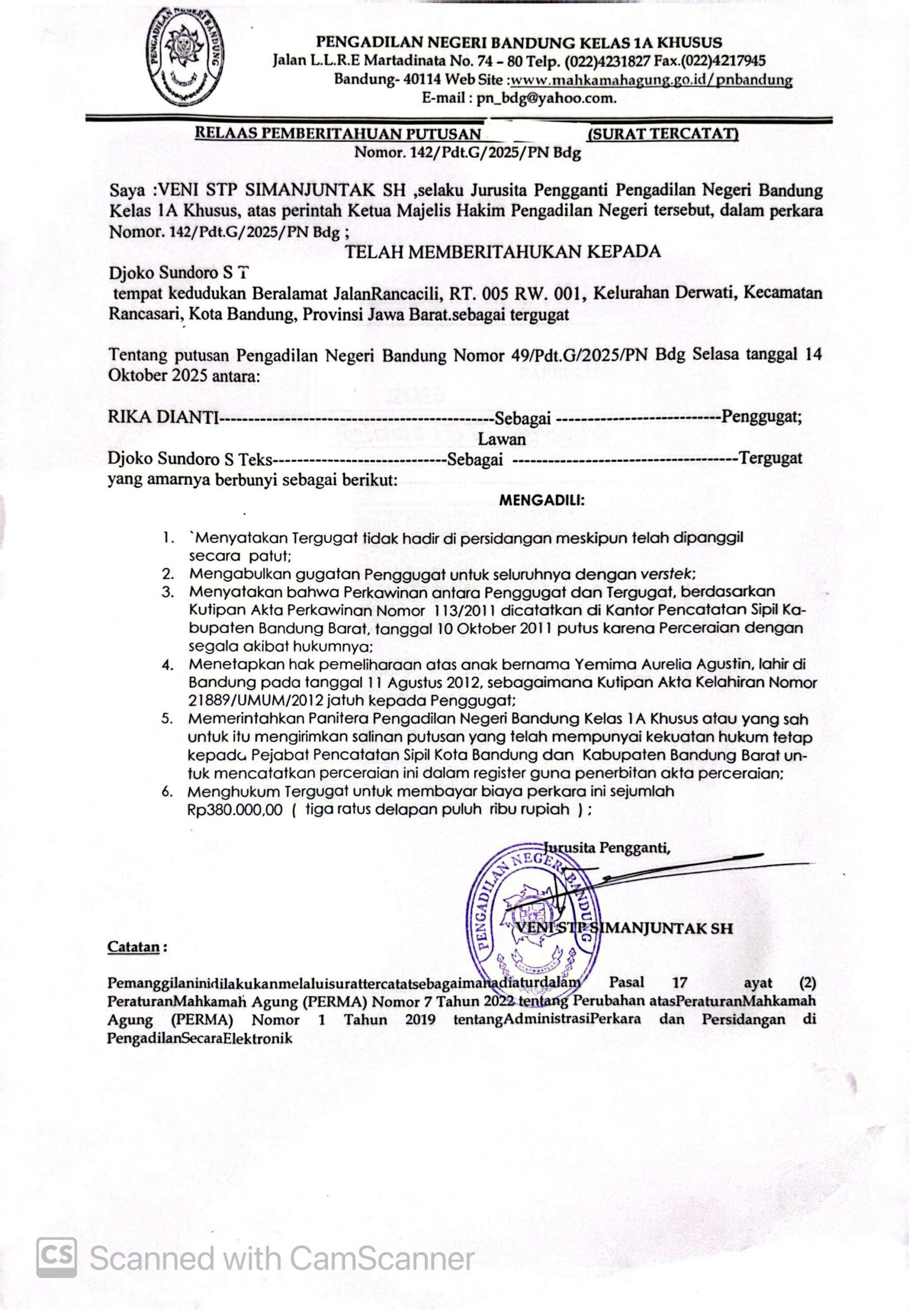 Relaas Pemberitahuan dan Penyerahan Memori Banding Nomor 512/Pdt.G/2024/PN Bdg Jo. Nomor 102/Pdt/B/2025/PN Bdg Relaas Pemberitahuaan