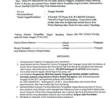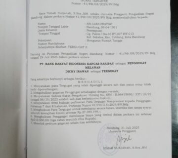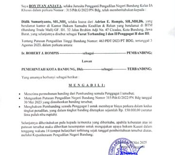 Relaas pemberitahuan isi putusan tingkat Banding nomor perkara 425/PDT/2025/PT BDG jo. 1/Pdt.Bth/2025/PN Bdg jo. 40/Pdt.B/2025/PN Bdg Relaas Pemberitahuaan