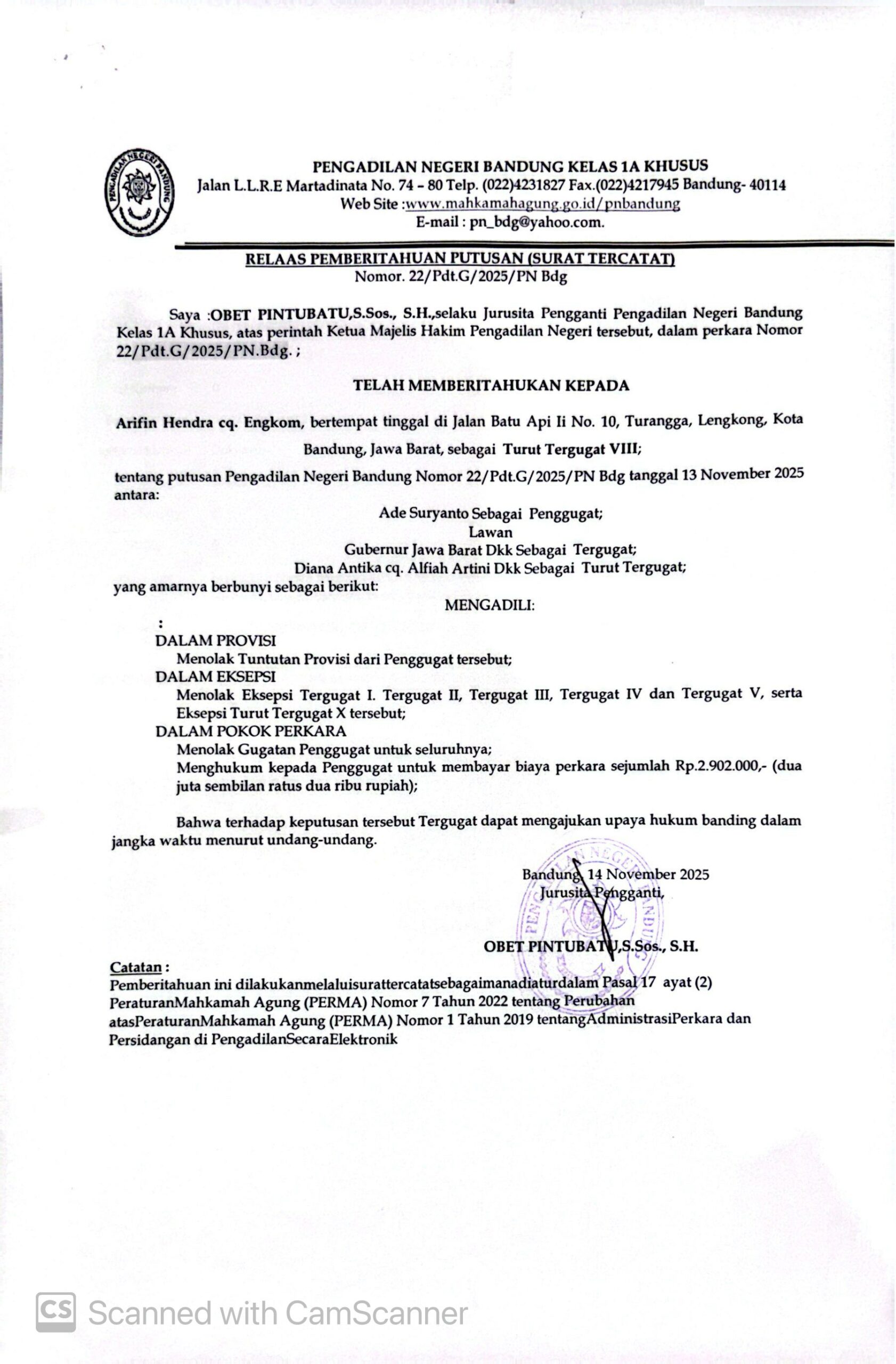 Nomor : 22/Pdt.G/2025/PN Bdg