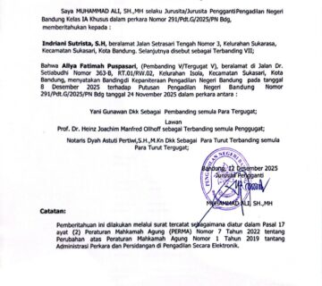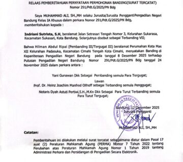 Relaas Pemberitahuan Pernyataan Banding Nomor 22/Pdt.G/2025/PN Bdg Jo. 116/Pdt.B/2025/PN Bdg Relaas Pemberitahuaan
