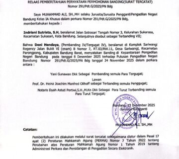 Relaas Pemberitahuan Memeriksa Berkas (Inzage) Nomor 22/Pdt.G/2025/PN Bdg Jo. 116/Pdt.B/2025/PN Bdg Relaas Pemberitahuaan