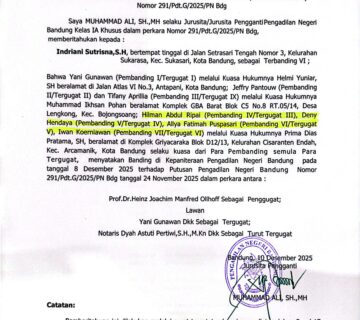 Relaas Pemberitahuan Kontra Memori Banding Nomor 22/Pdt.G/2025/PN Bdg Jo. 116/Pdt.B/2025/PN Bdg Relaas Pemberitahuaan